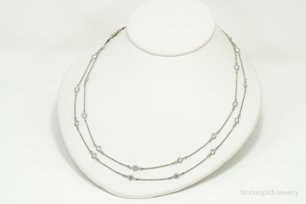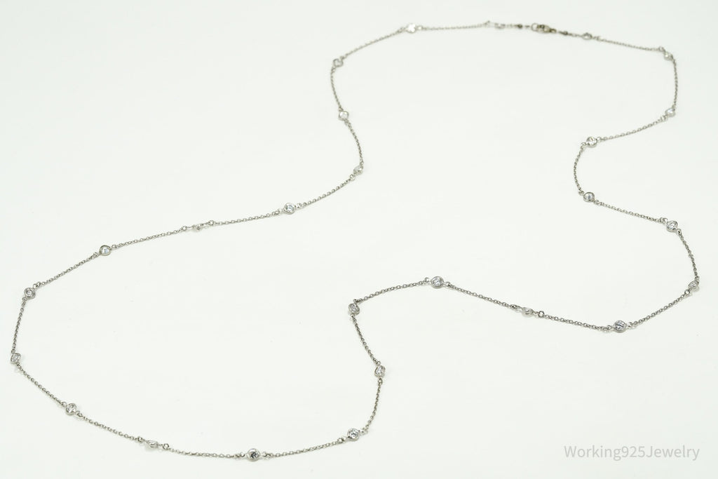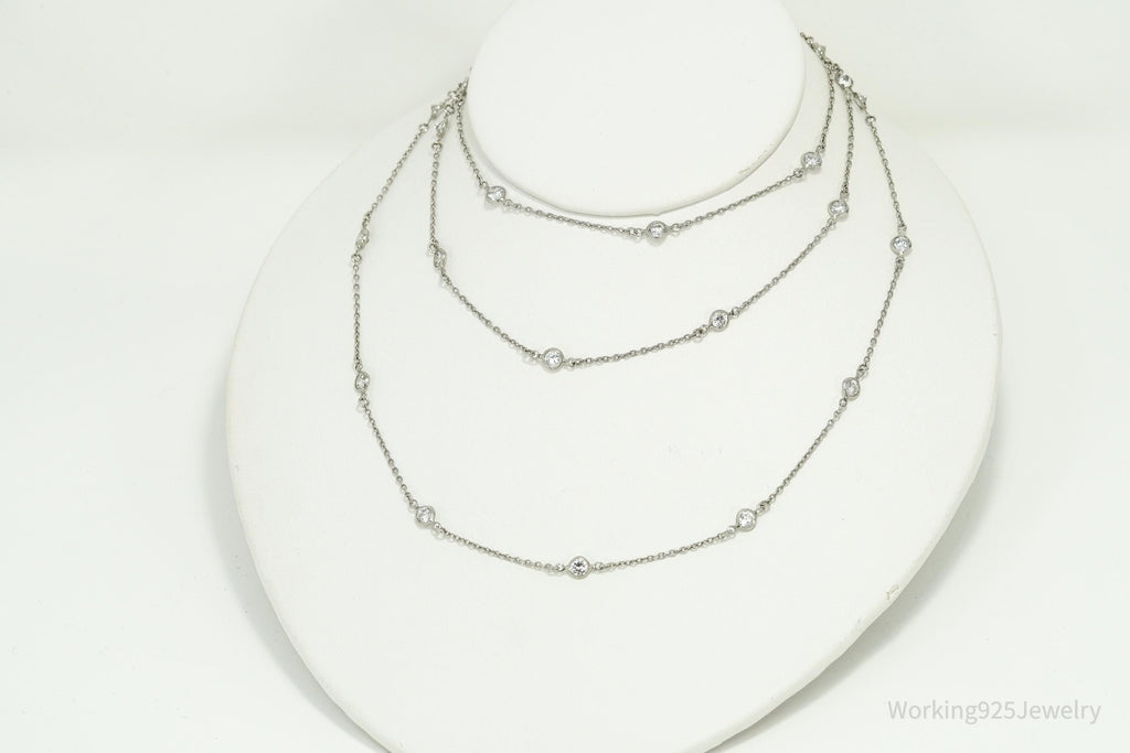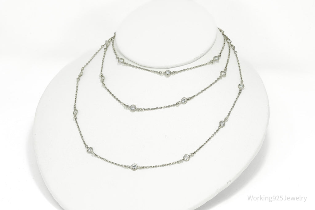 Vintage Cubic Zirconia Sterling Silver Necklace 40"