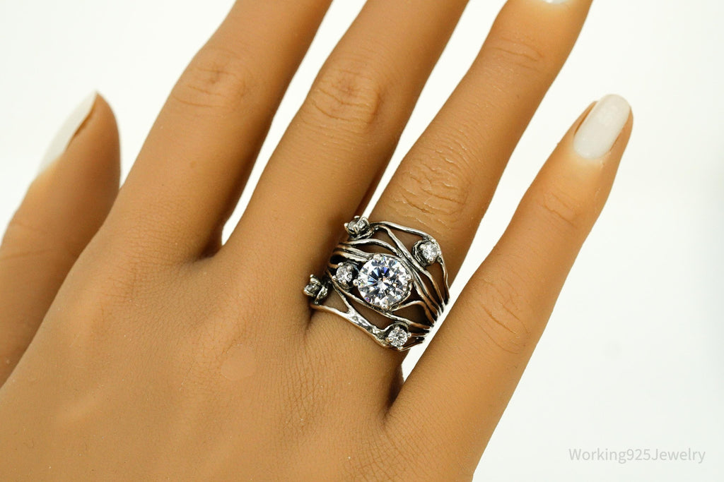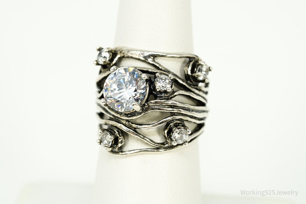 Vintage Cubic Zirconia Sterling Silver Ring - Size 7