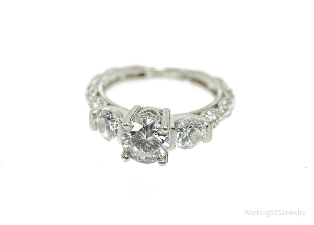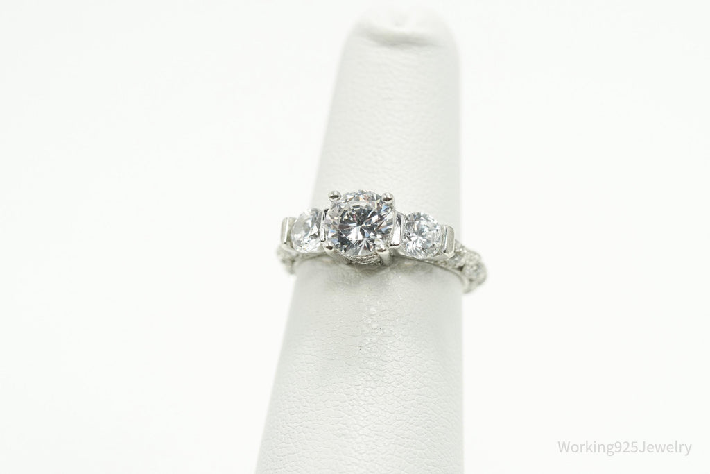 Vintage Cubic Zirconia Sterling Silver Ring - Size 4.75