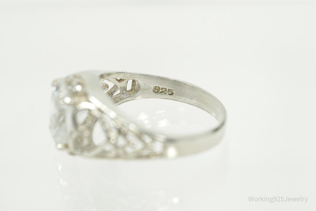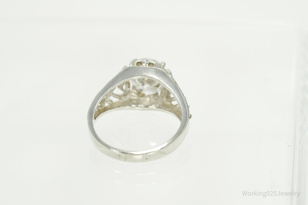 Vintage Cubic Zirconia Sterling Silver Ring - Size 7.75