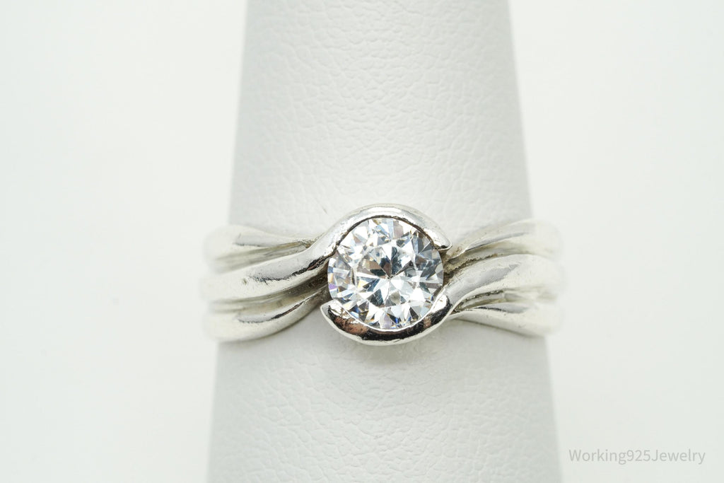 Vintage Cubic Zirconia Sterling Silver Ring - Size 7