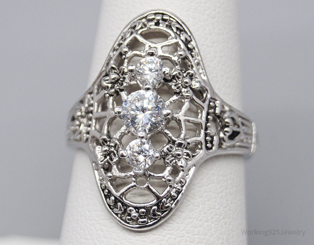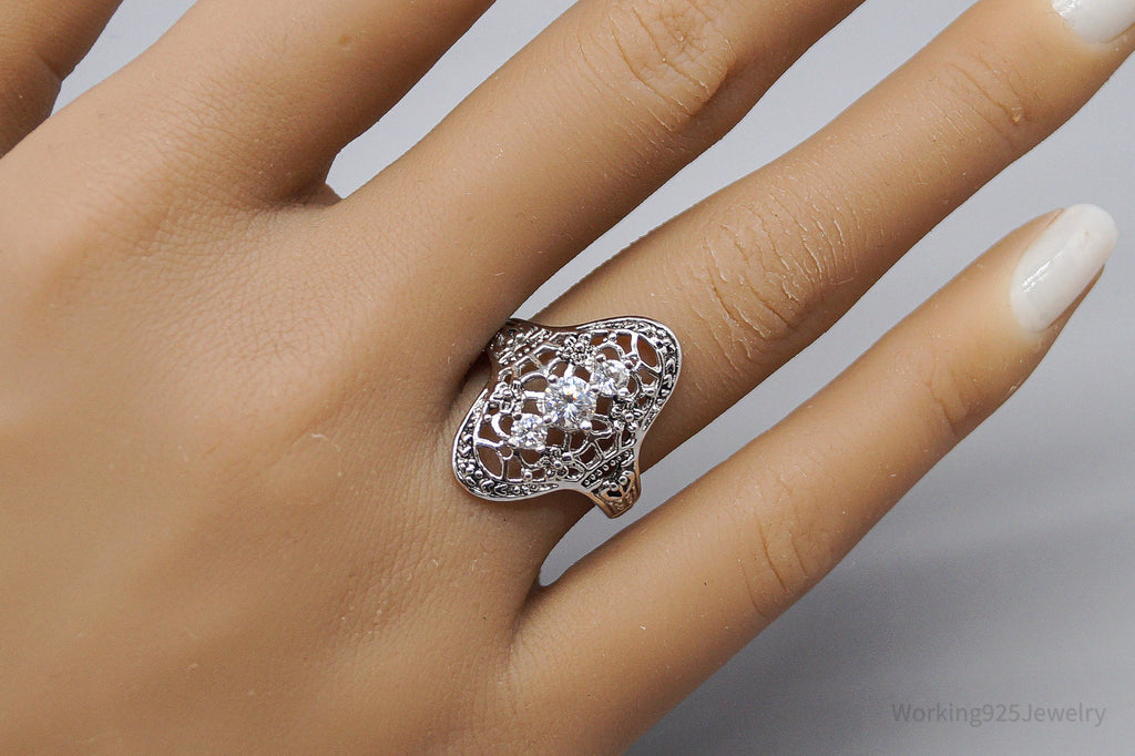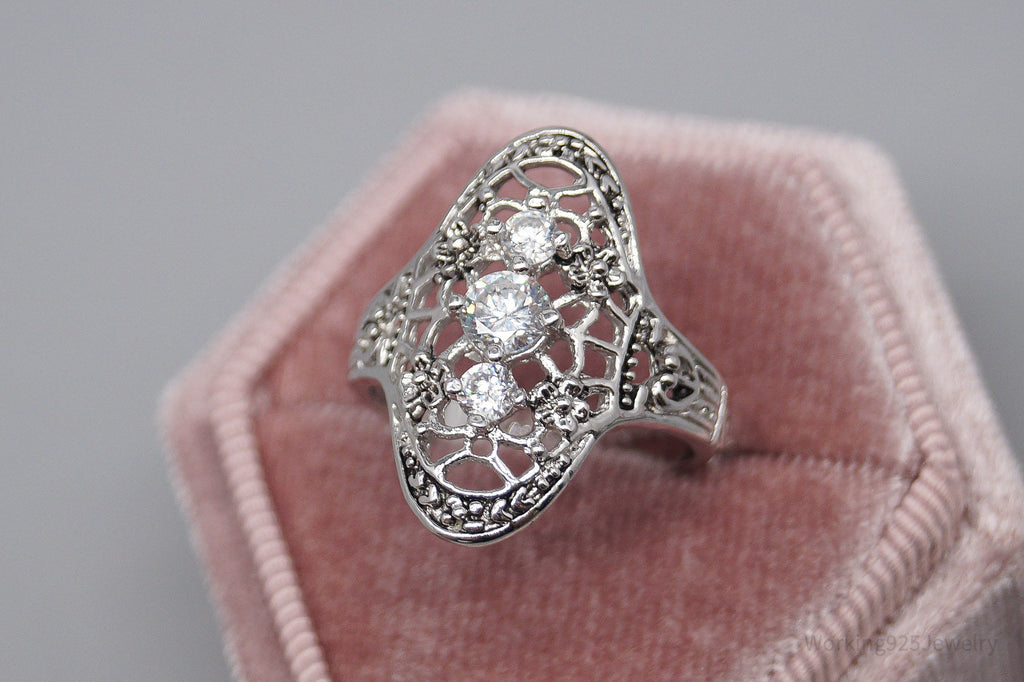 Vintage Cubic Zirconia Sterling Silver Ring - Size 7