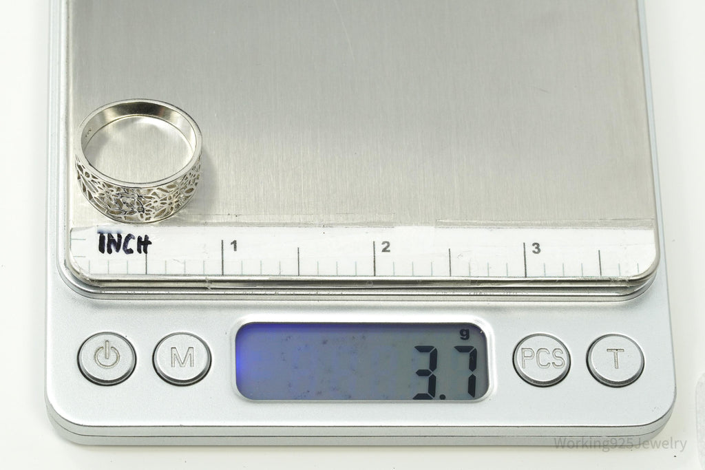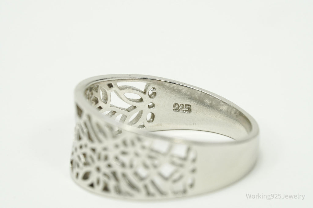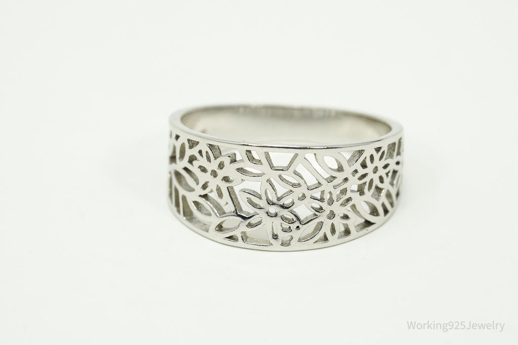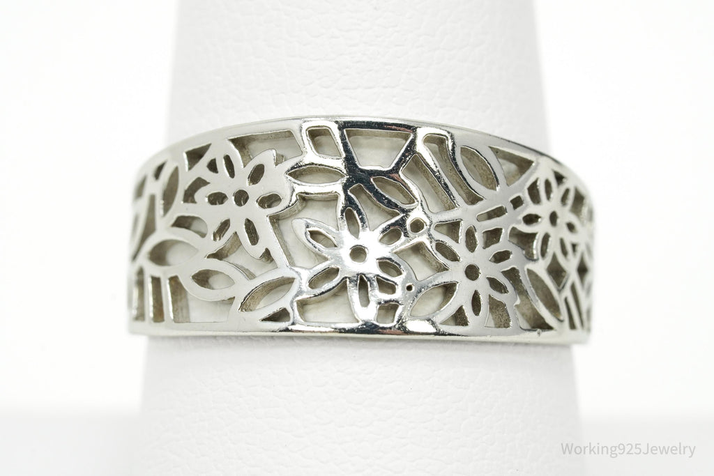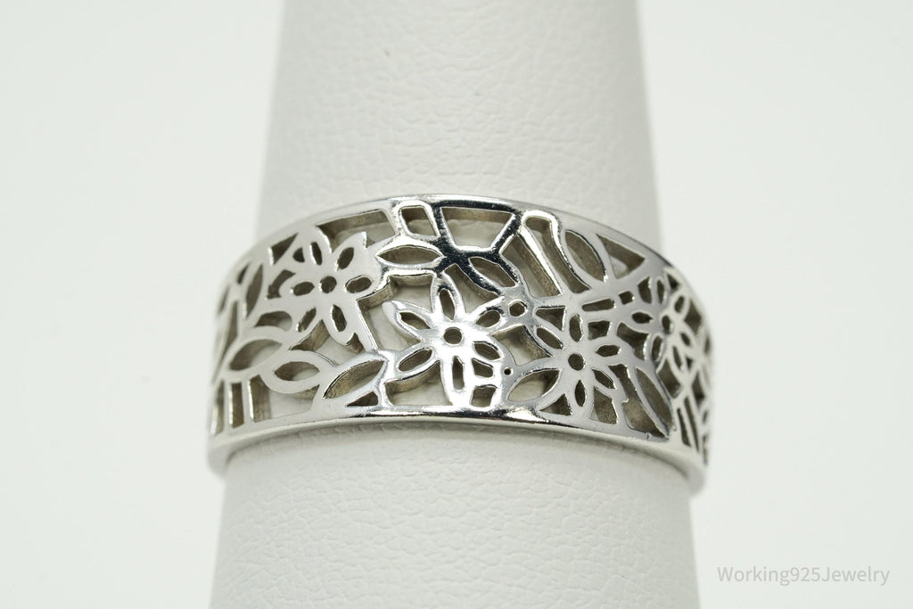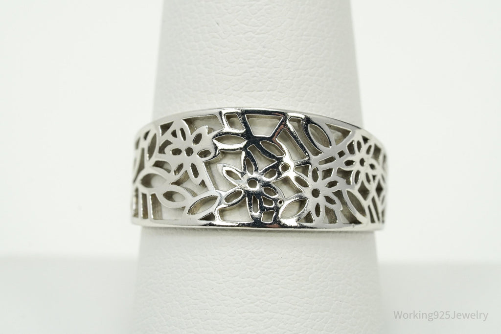 Vintage Cut Out Flowers Design Sterling Silver Ring - Size 8.75