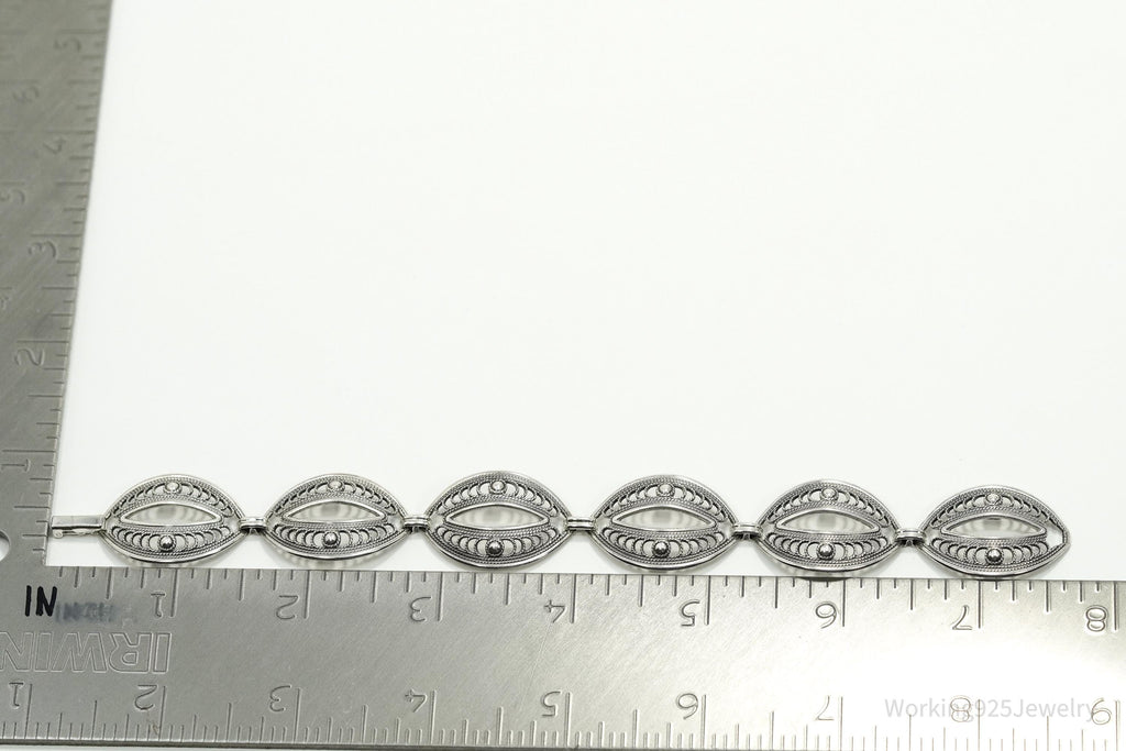 Vintage Danecraft Ornate Mid Century Sterling Silver Bracelet 7 5/8"