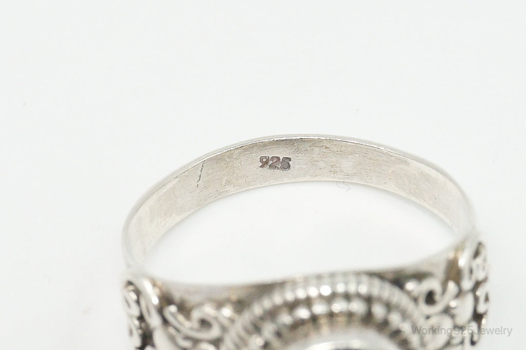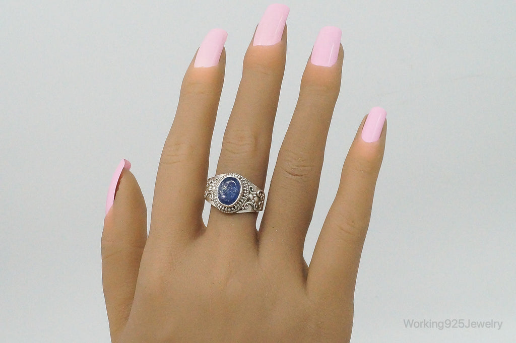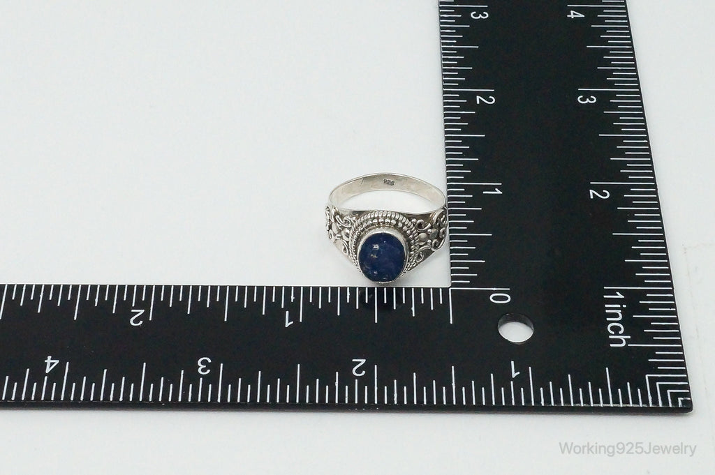 Vintage Dark Blue Gemstone Bali Style Sterling Silver Ring Size 10