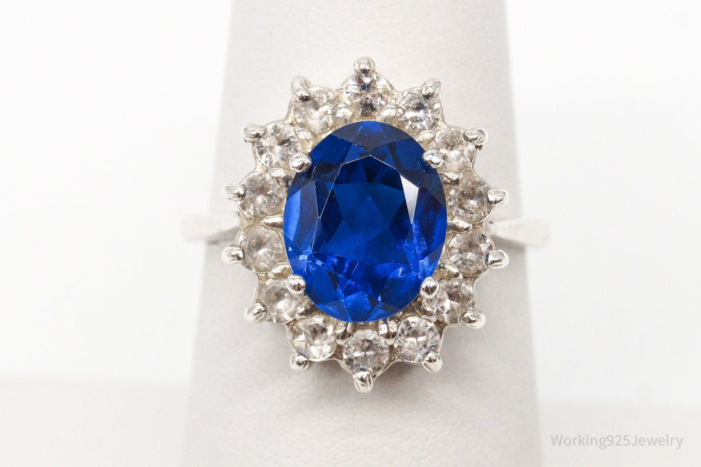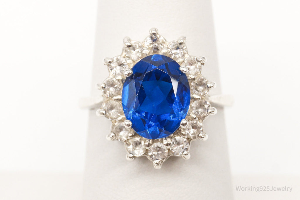 Vintage Dark Blue Topaz Birmingham Sterling Silver Ring - Size 6.5