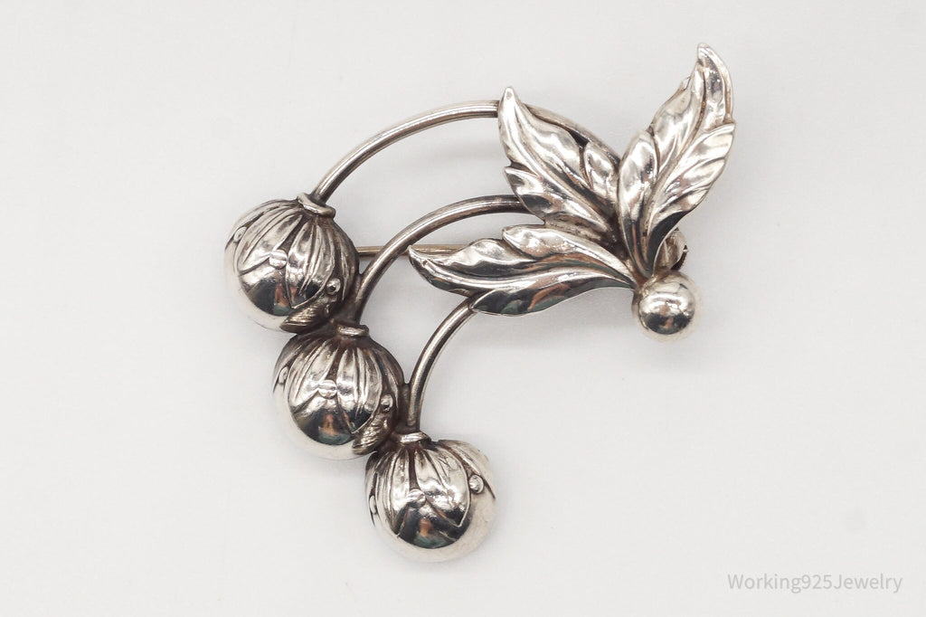 Vintage Denmark Hermann Siersbol Modernist Floral Sterling Silver Pin Brooch