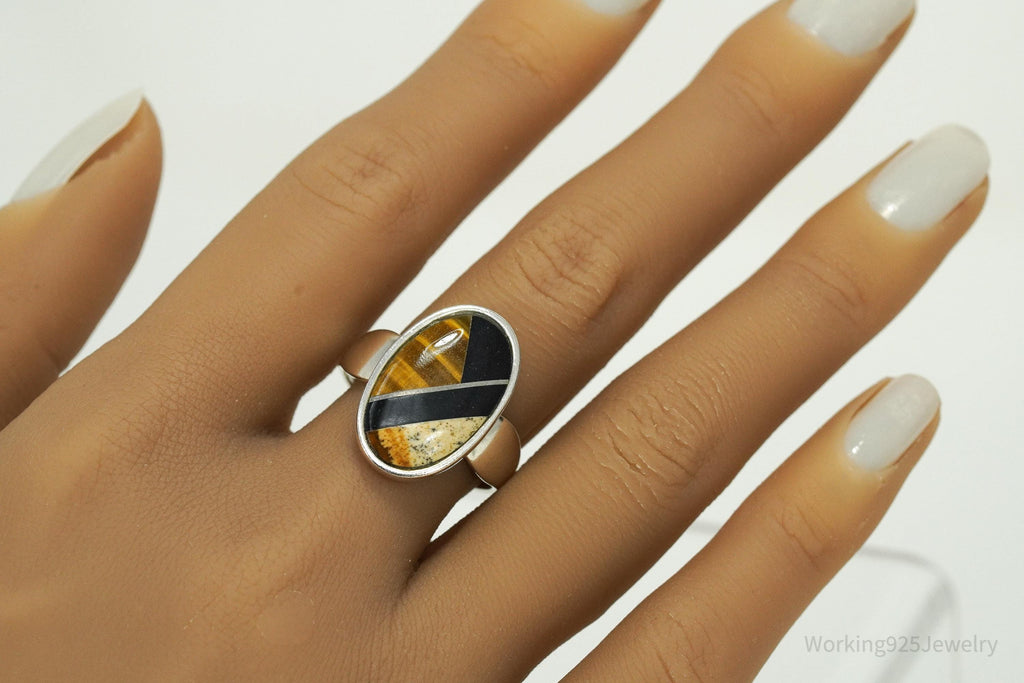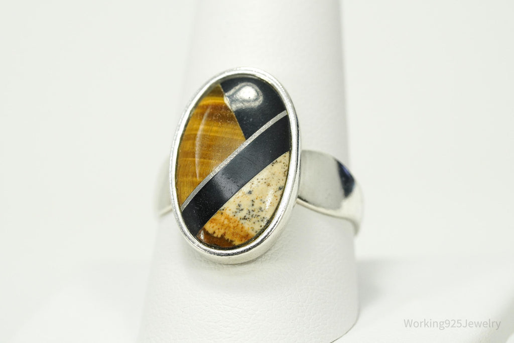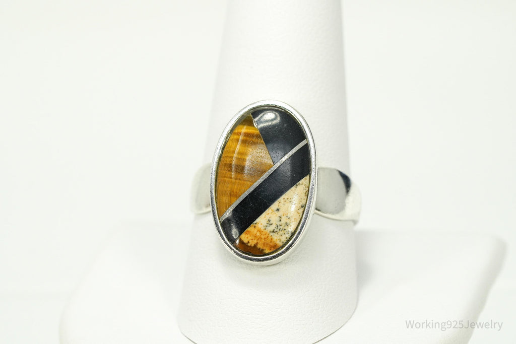 Vintage Desert Rose Trading Multi Stone Inlay Sterling Silver Ring Size 10.25