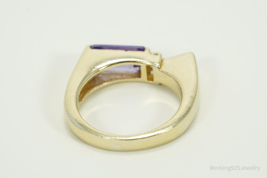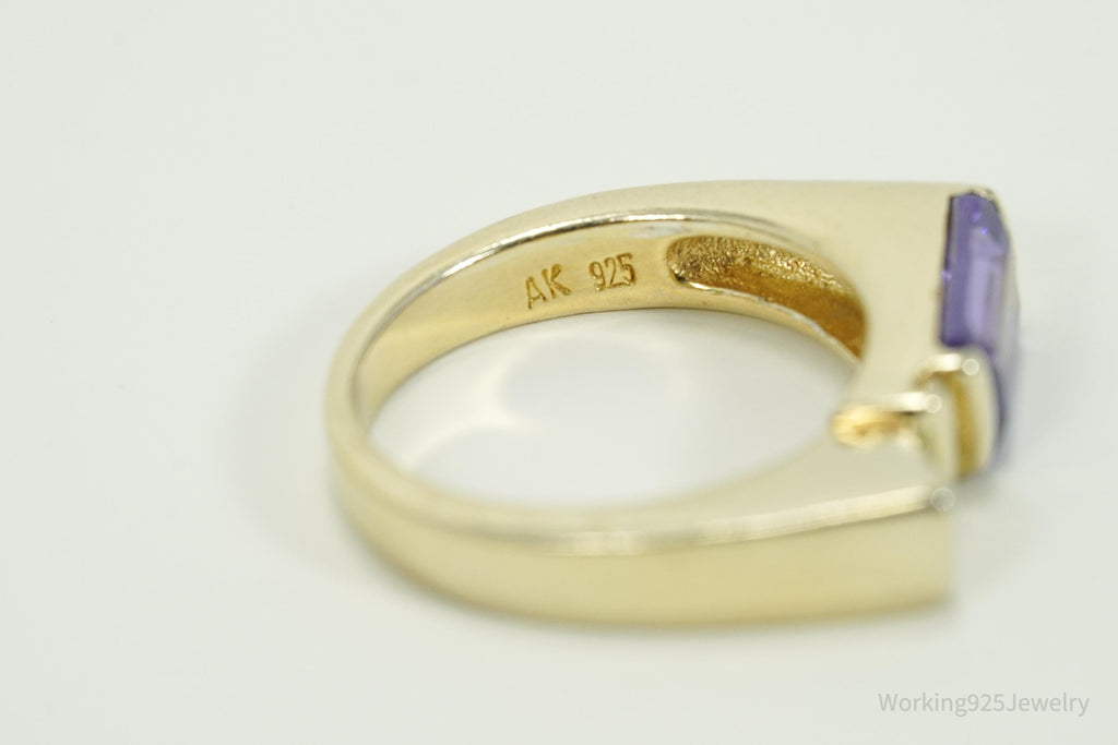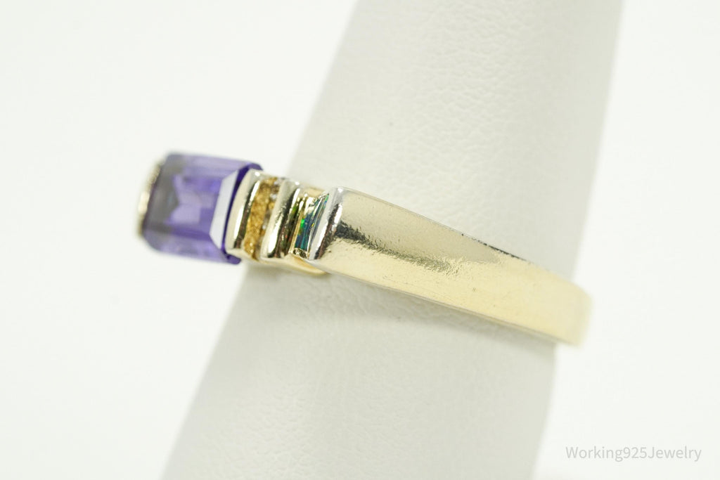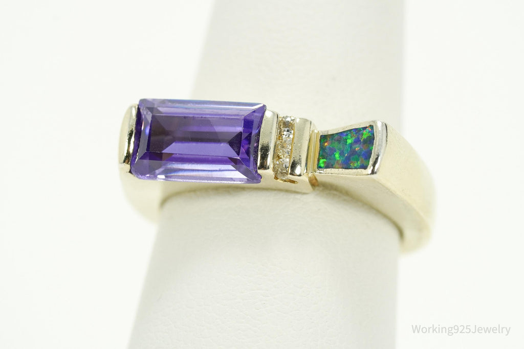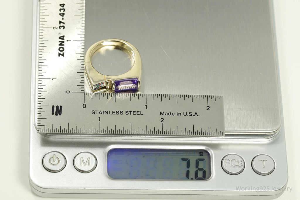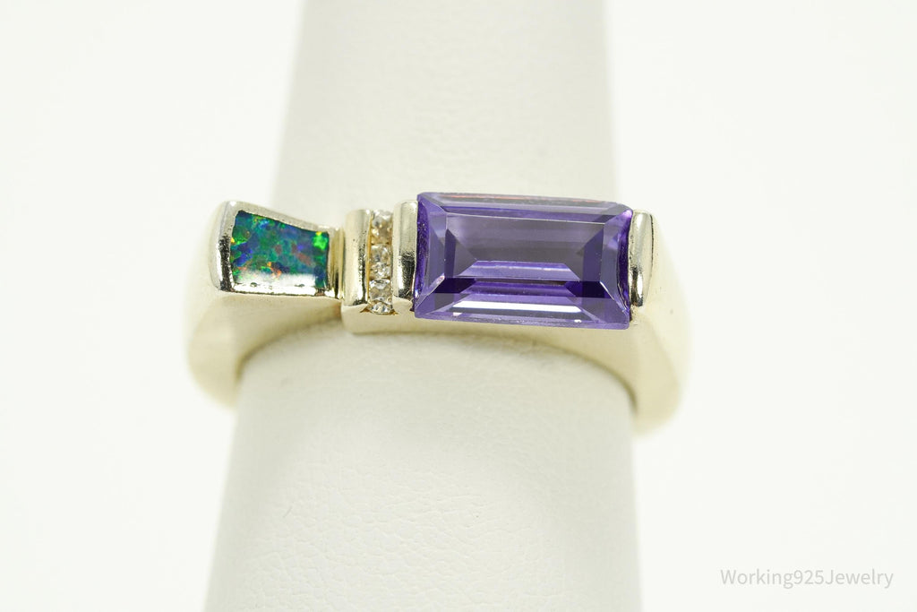 Vintage Designer AK Purple & White CZ Opal Gold Over Sterling Silver Ring - Size 8