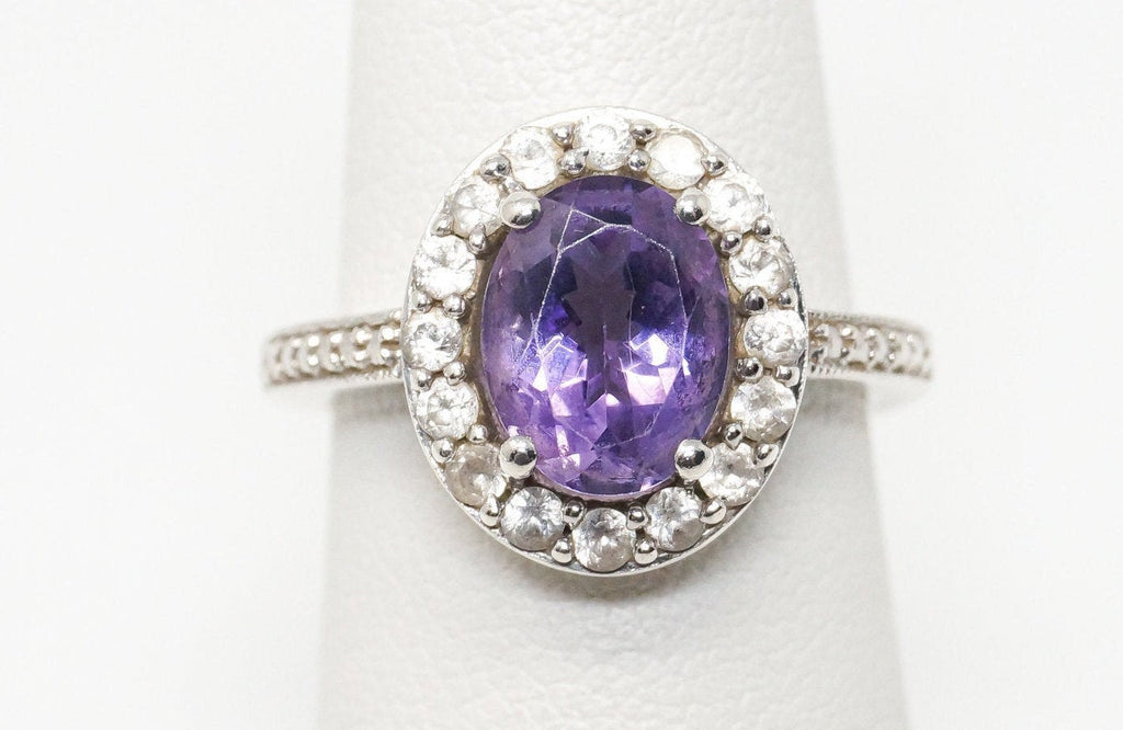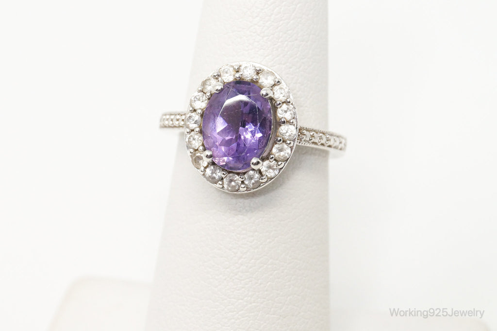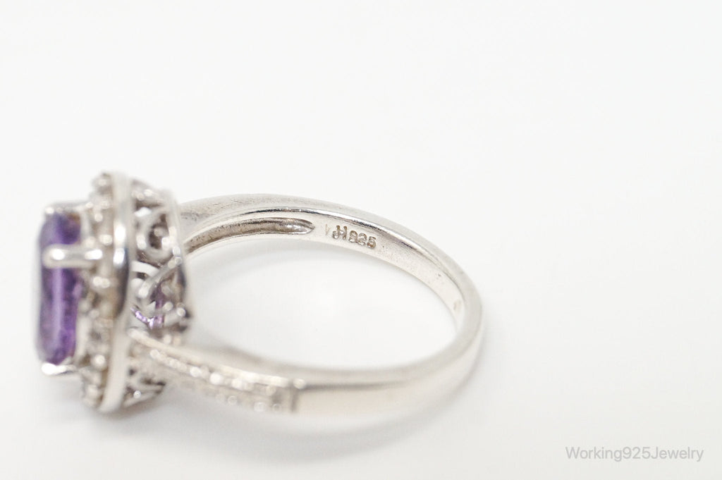 Vintage Designer Amethyst CZ Sterling Silver Ring - Sz 5.25