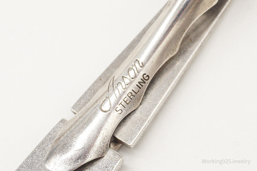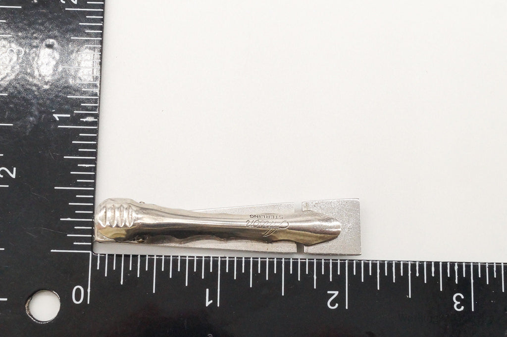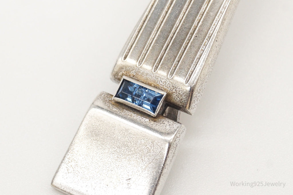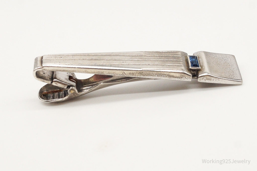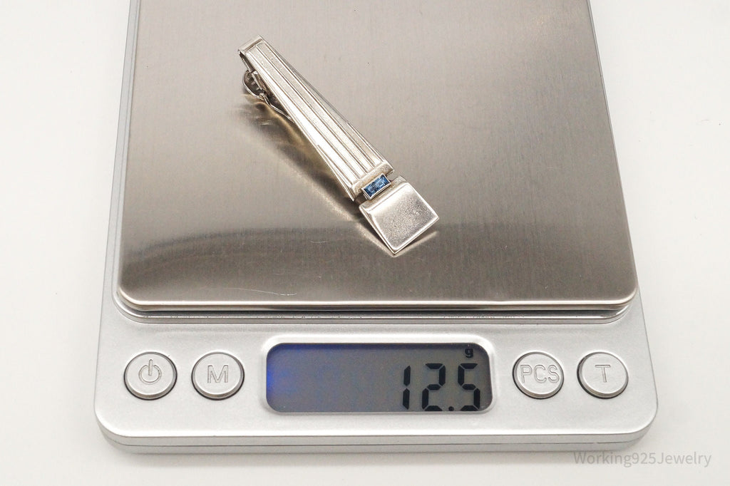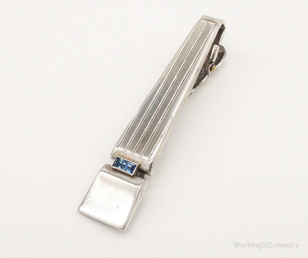 Vintage Designer Anson Blue Glass Stone Sterling Silver Tie Bar Clip