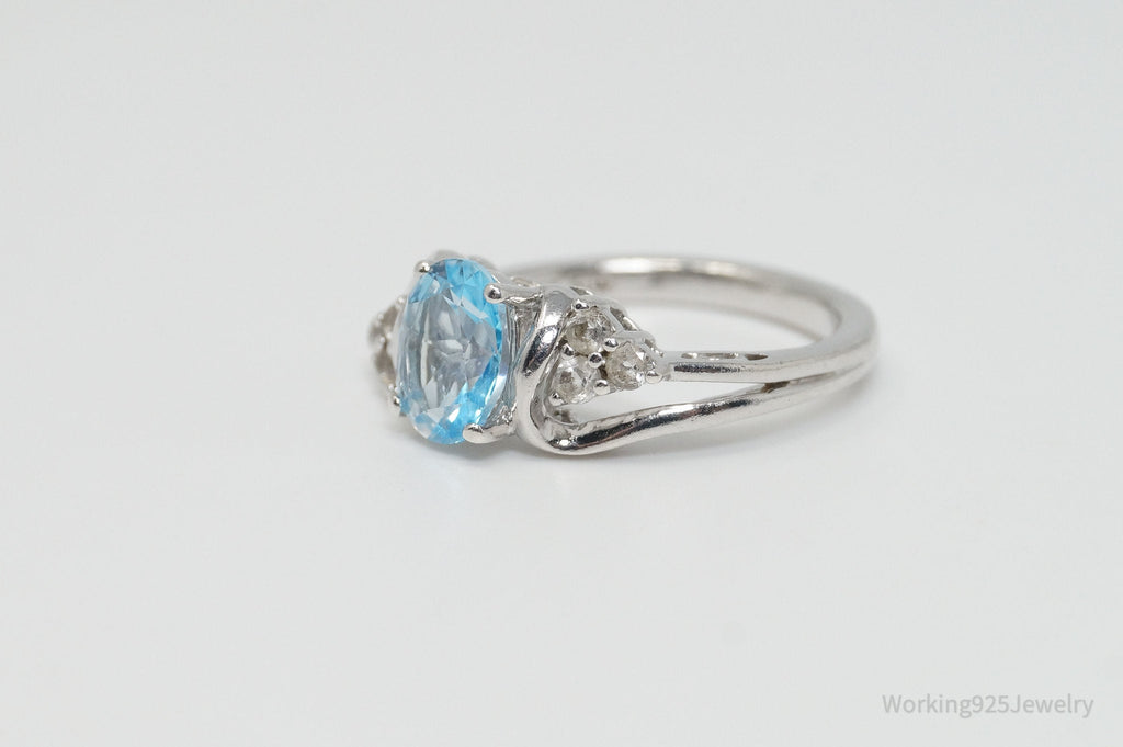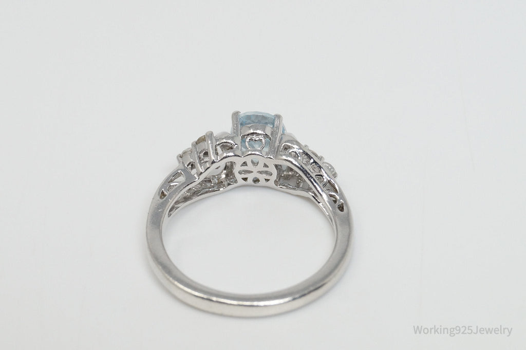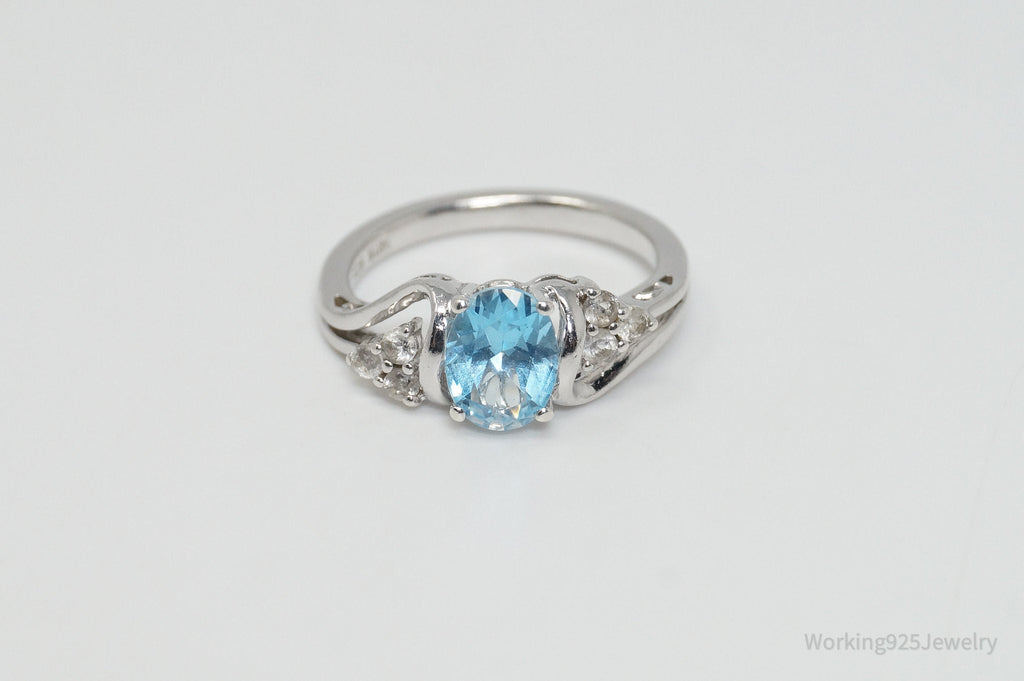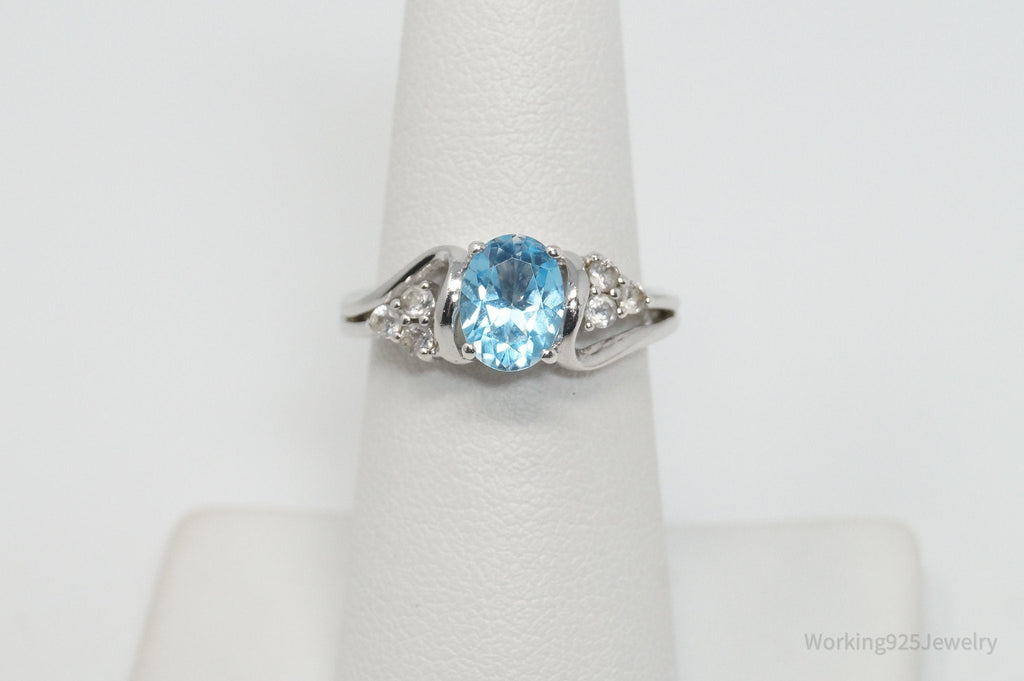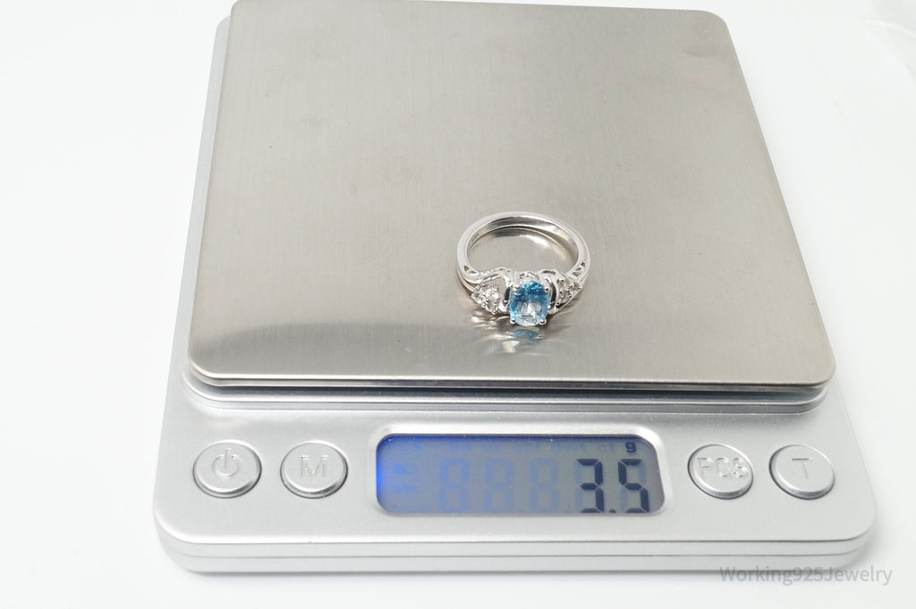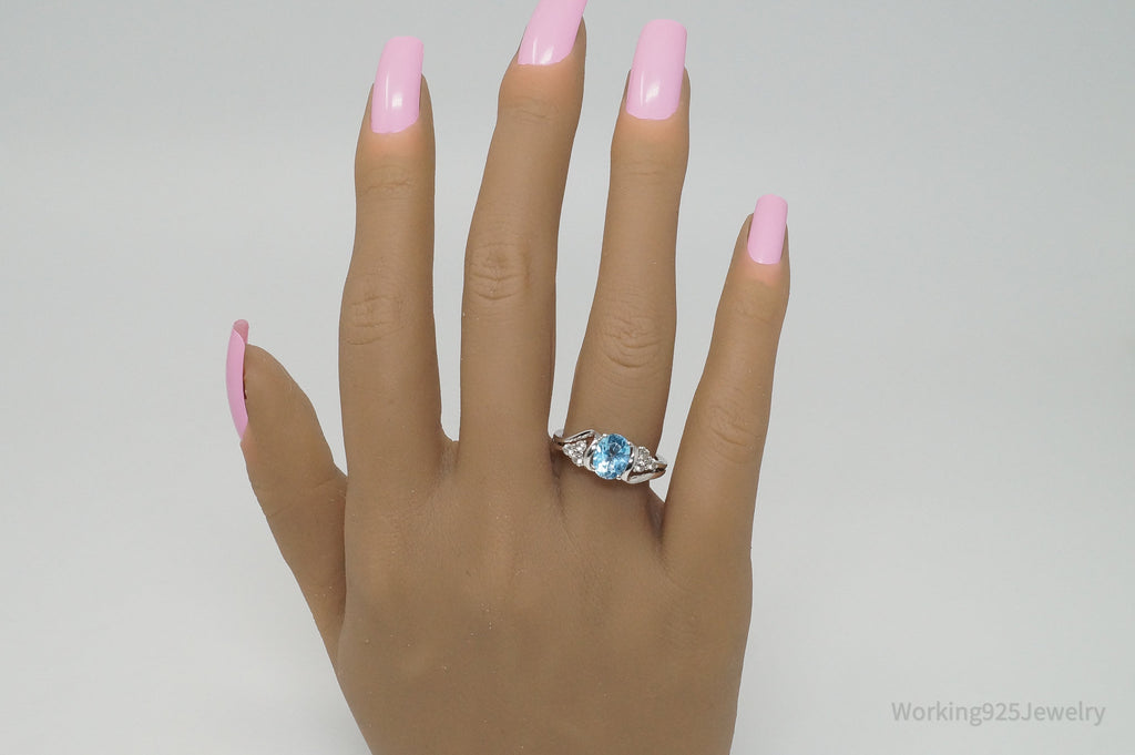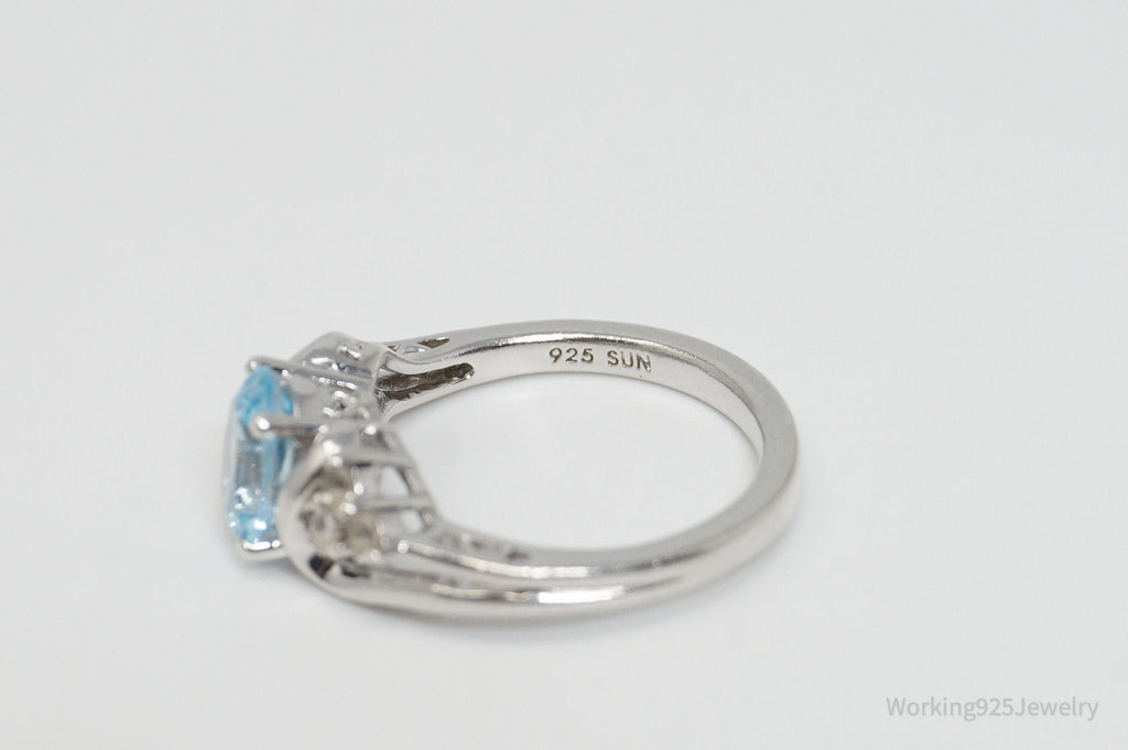 Vintage Designer Art Deco Blue Topaz Cz Sterling Silver Ring Sz 6.25