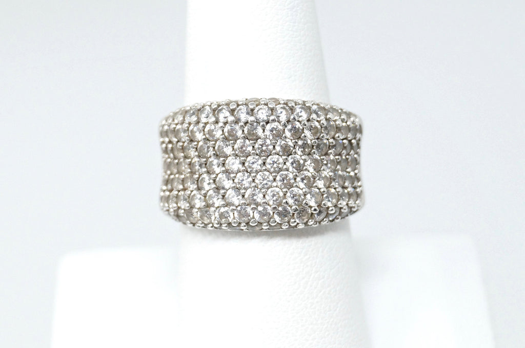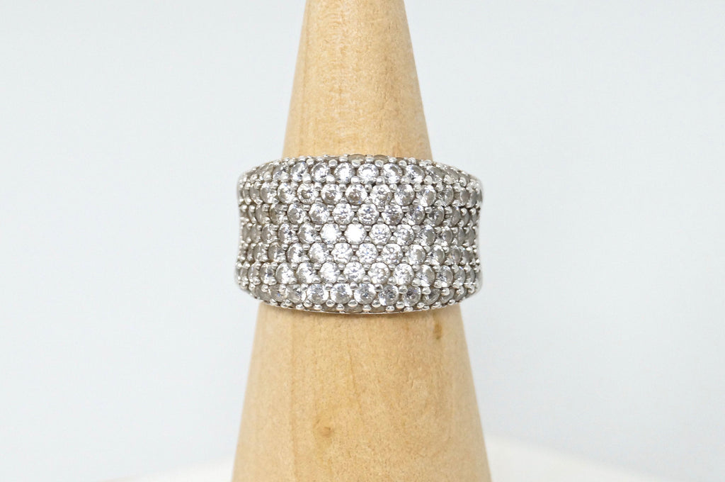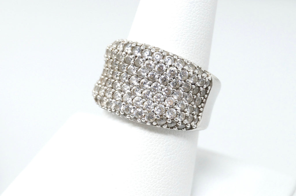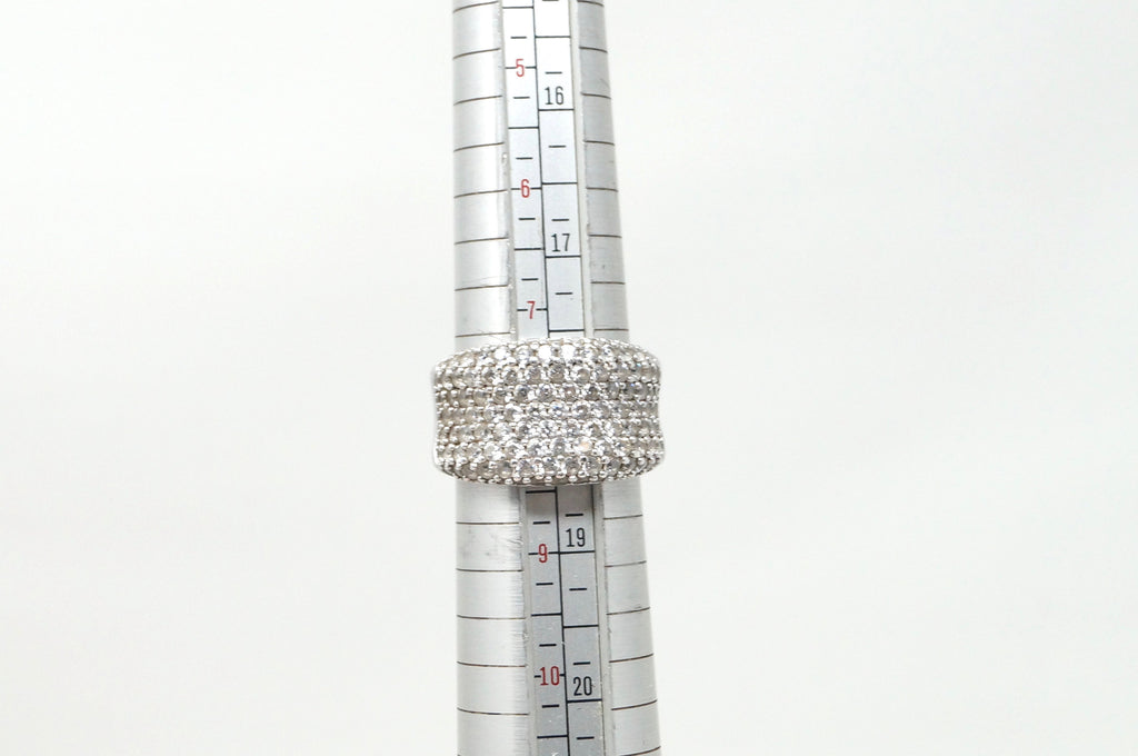 Vintage Designer Art Deco CZ Sterling Silver Statement Band Ring Sz 8.5