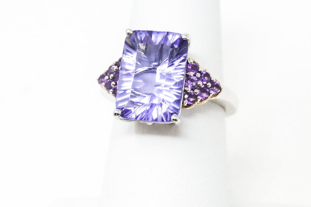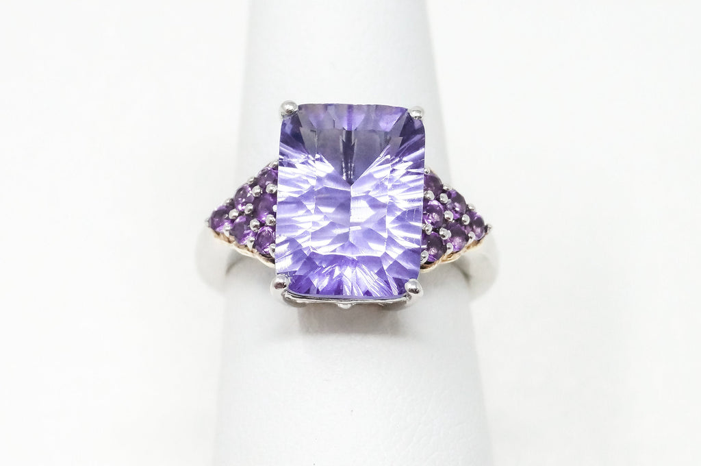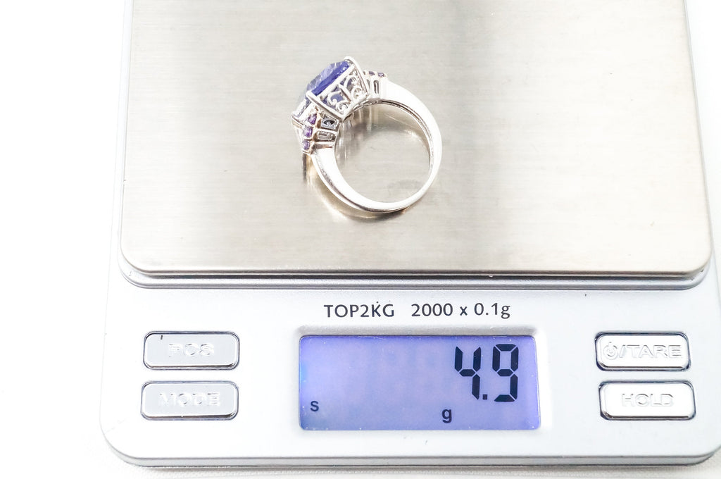 Vintage Designer Art Deco Large Amethyst Sterling Silver Ring - Sz 6.75