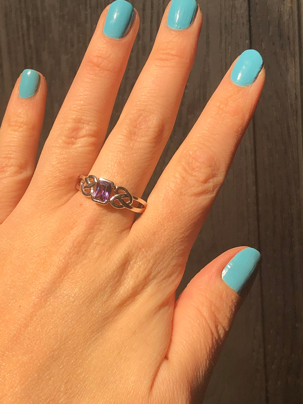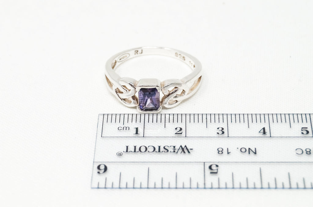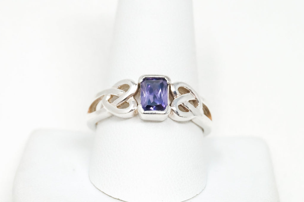 Vintage Designer Avon Amethyst Celtic Style Sterling Silver Ring - Sz 10.75