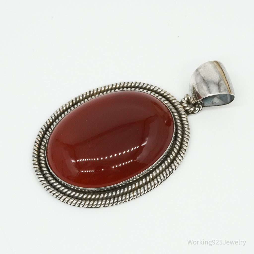 Vintage Designer BA Suarti Large Carnelian Sterling Silver Necklace Pendant