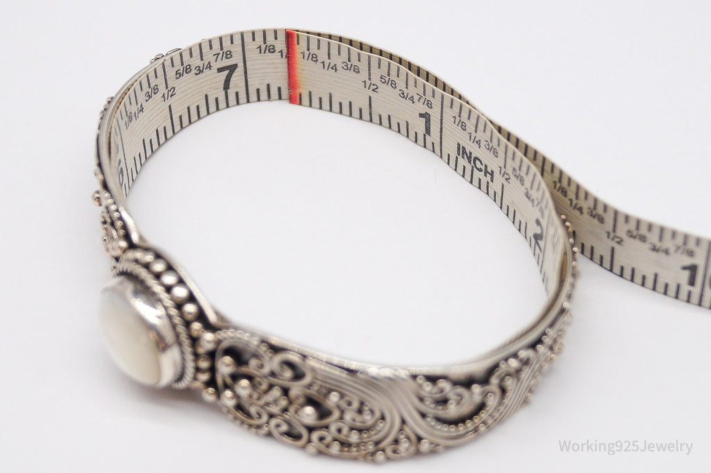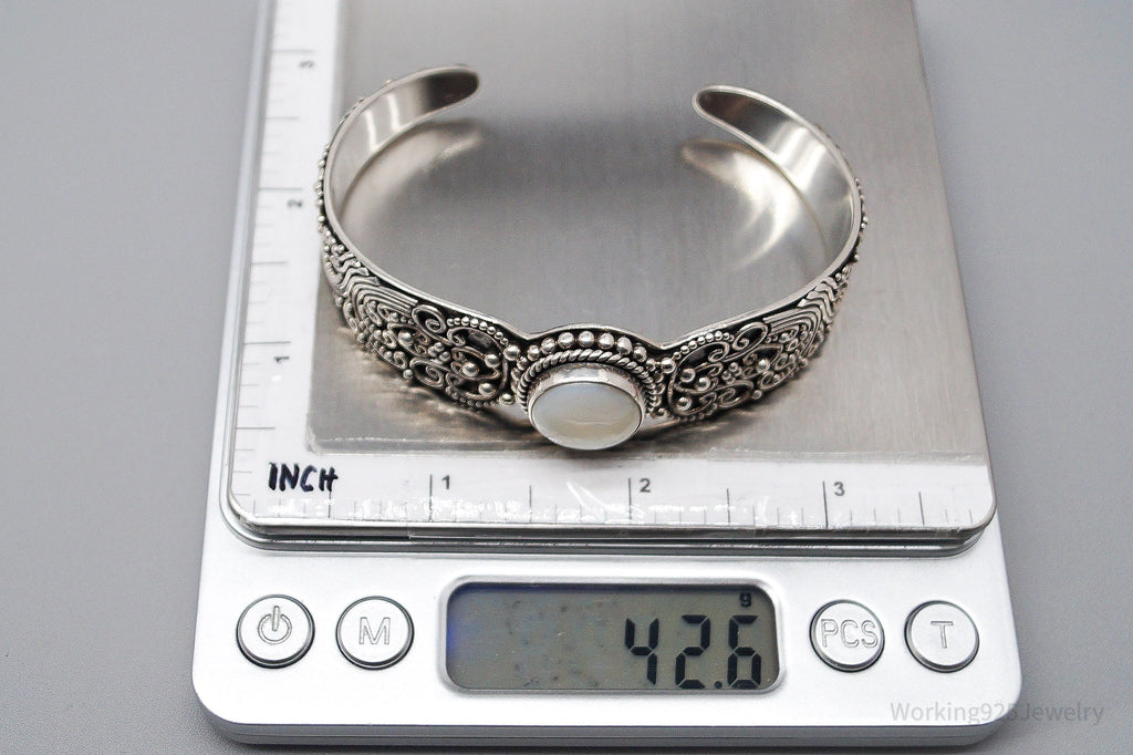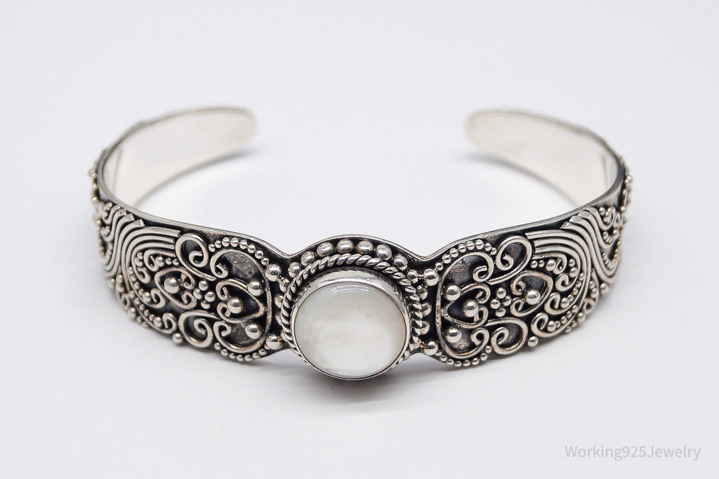 Vintage Designer BA Suarti Mother Of Pearl Sterling Silver Cuff Bracelet 7.25"