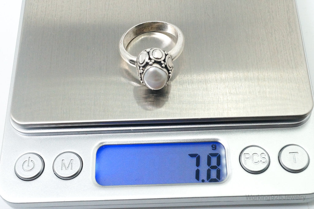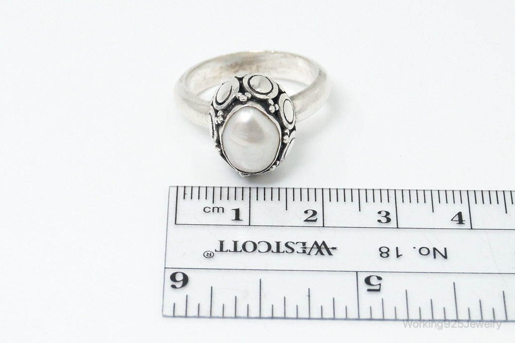 Vintage Designer BA Suarti Pearl Sterling Silver Ring Size 8.5