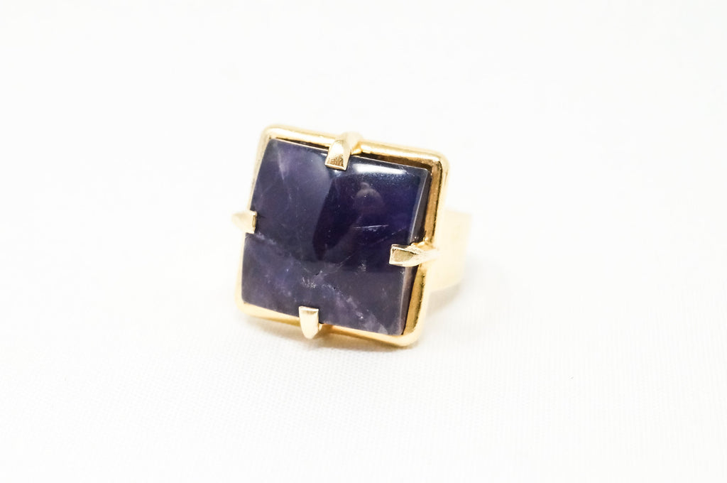 Vintage Designer Baluba Amethyst Gold Vermeil Sterling Silver Ring - Sz 7.5