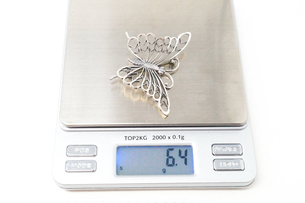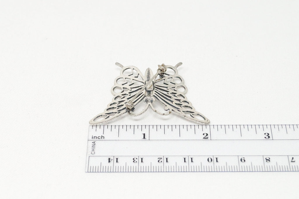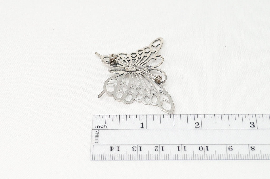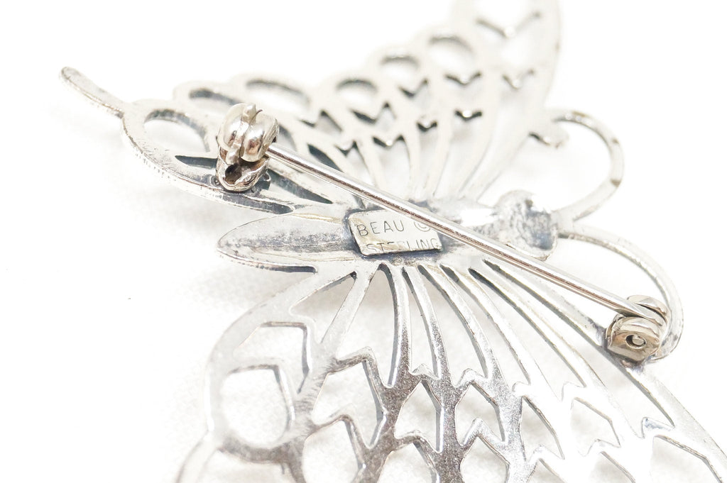 Vintage Designer Beau Butterfly Cut Out Modernist Sterling Silver Brooch Pin