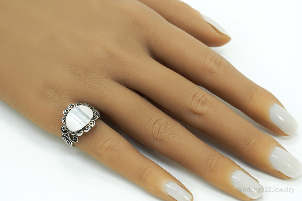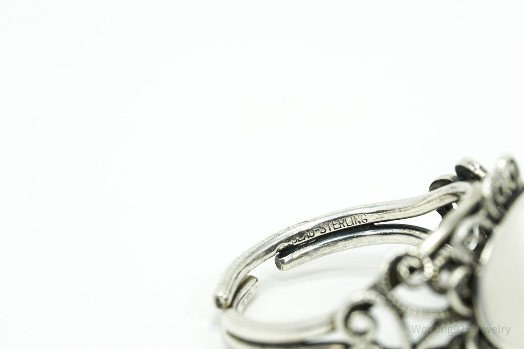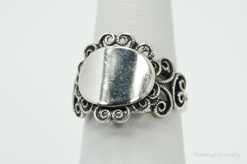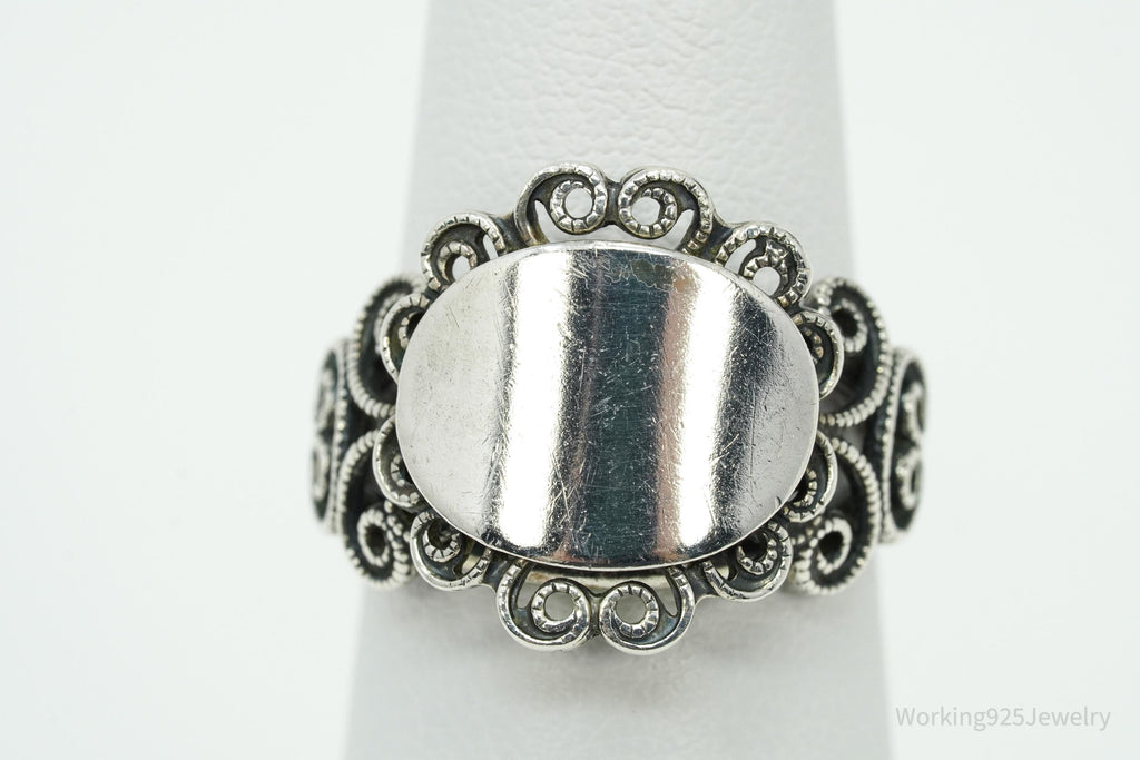 Vintage Designer Beau Filigree Sterling Silver Ring - Adjustable Size 6.25