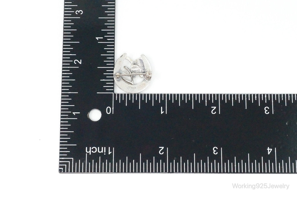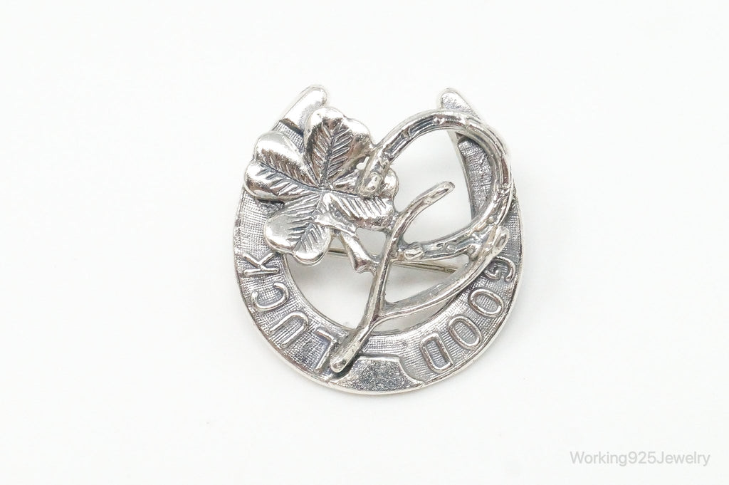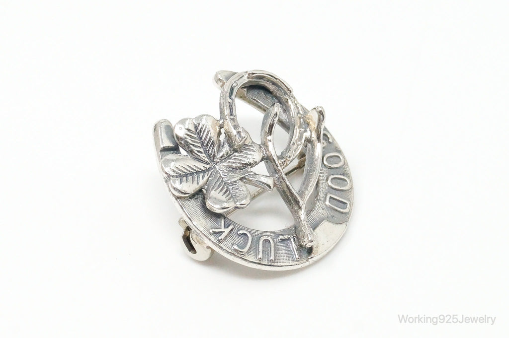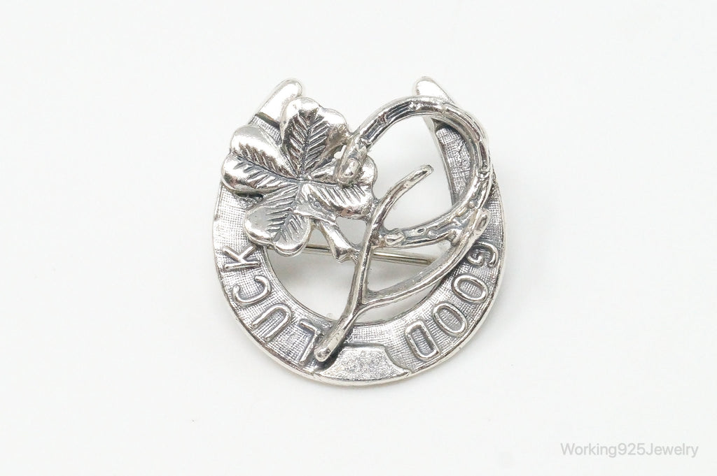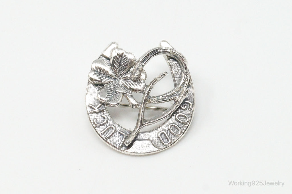 Vintage Designer Beau "Good Luck" Sterling Silver Brooch Pin