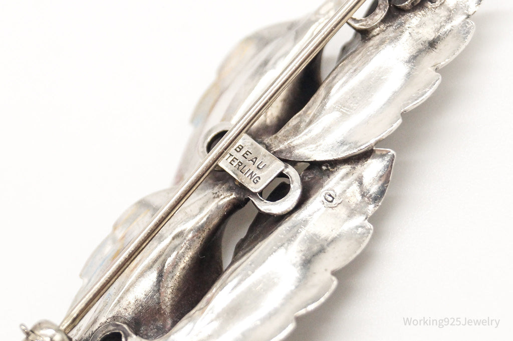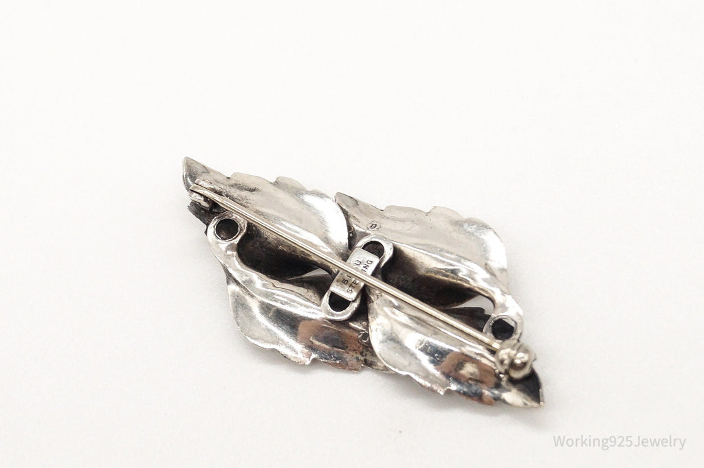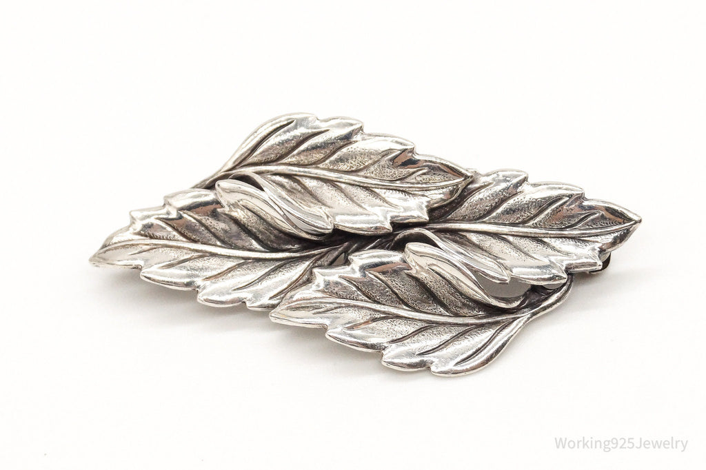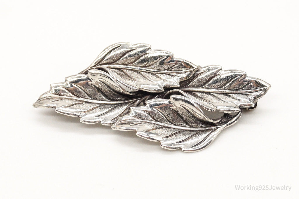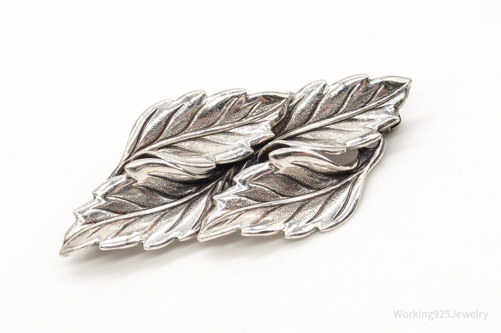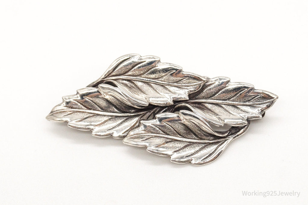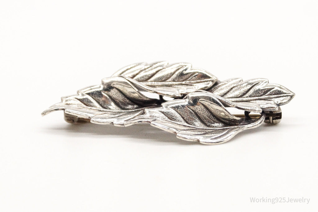 Vintage Designer Beau Leaves Sterling Silver Brooch Pin