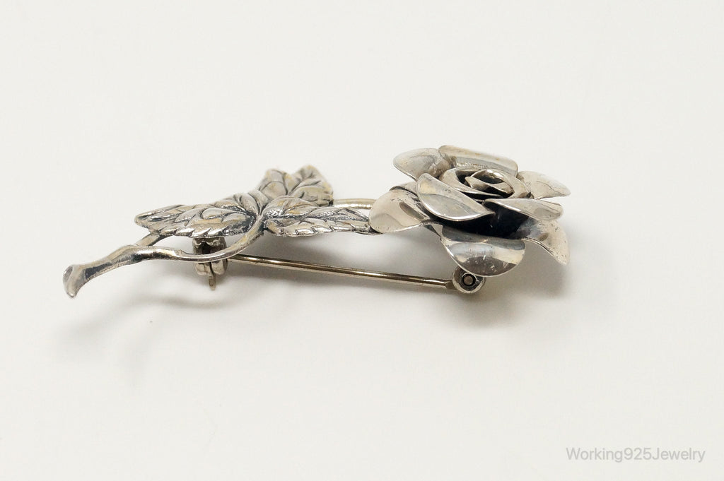 Vintage Designer Beau Rose Sterling Silver Brooch Pin