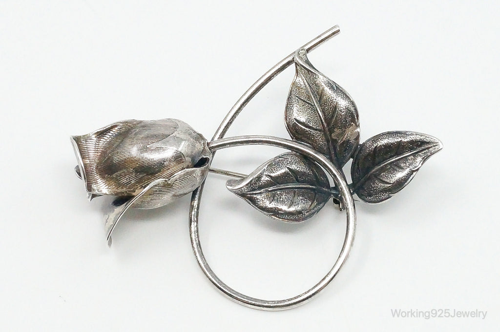 Vintage Designer Beau Rose Sterling Silver Brooch Pin