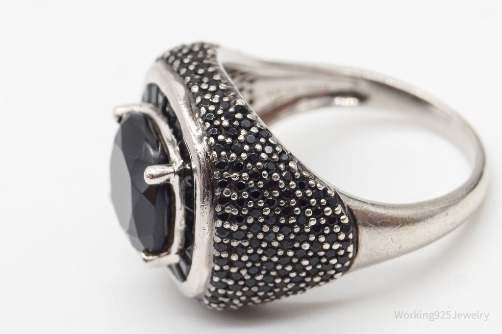 Vintage Designer Black Spinel Sterling Silver Ring - Size 8.75