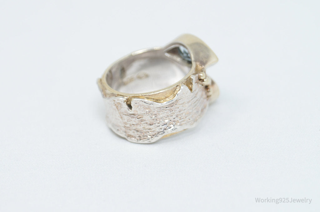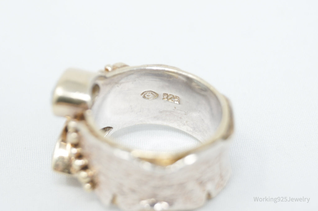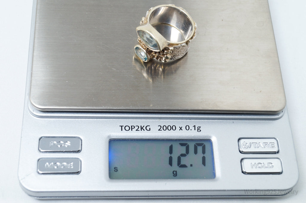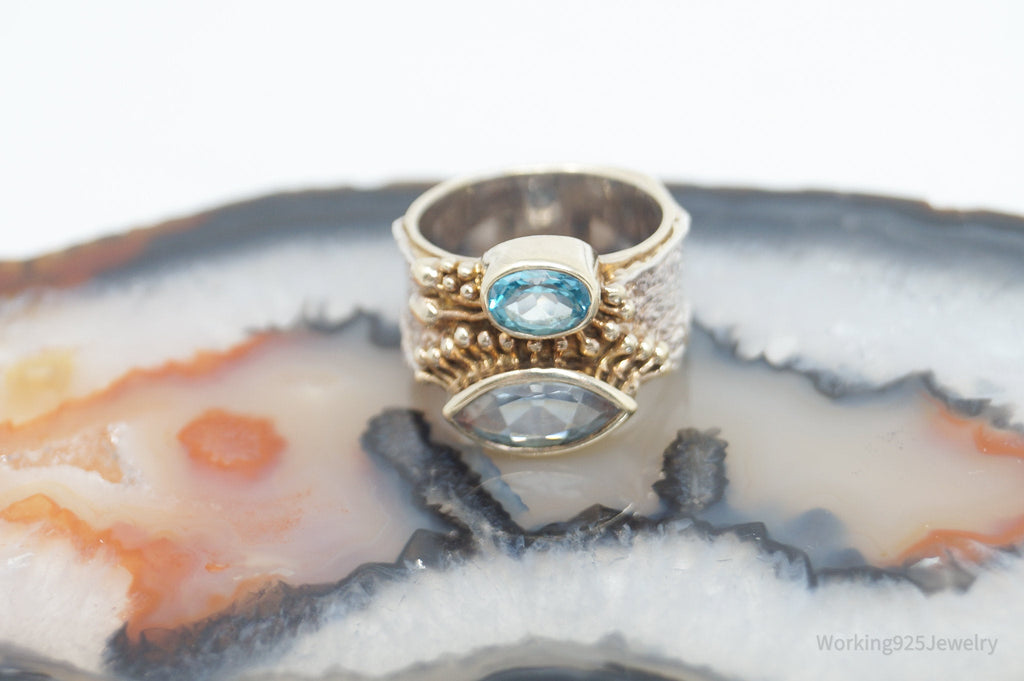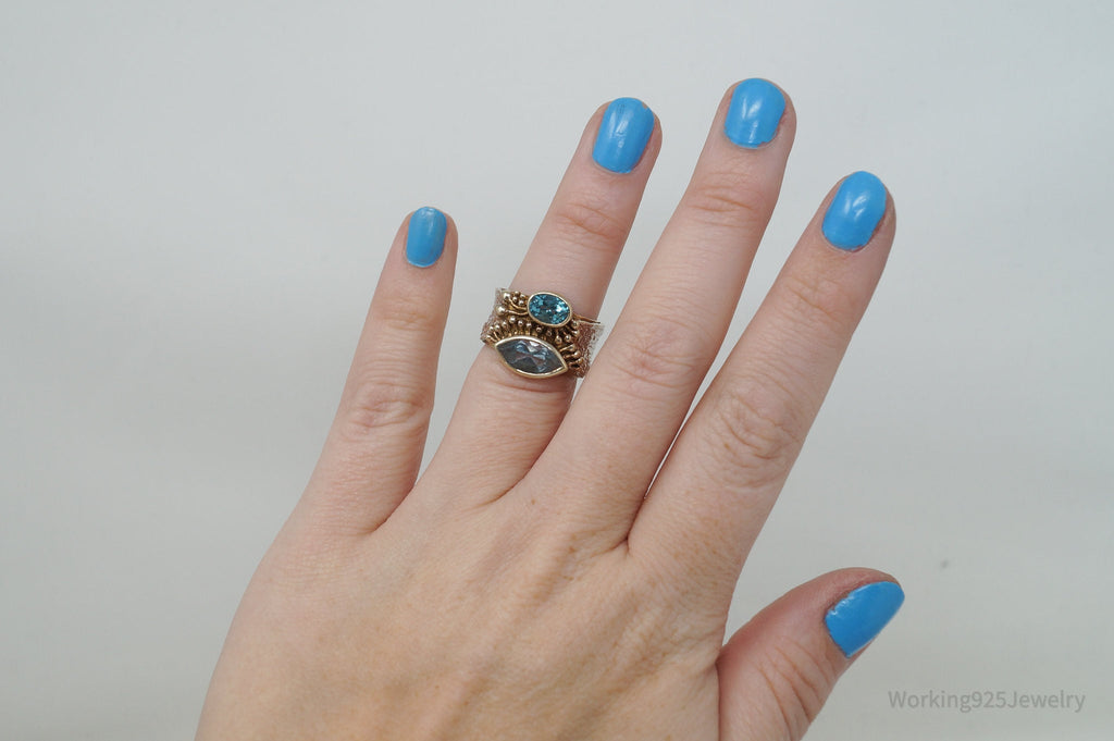Vintage Designer Blue Topaz Sterling Silver Gold Wash Two Tone Ring - Size 6.5