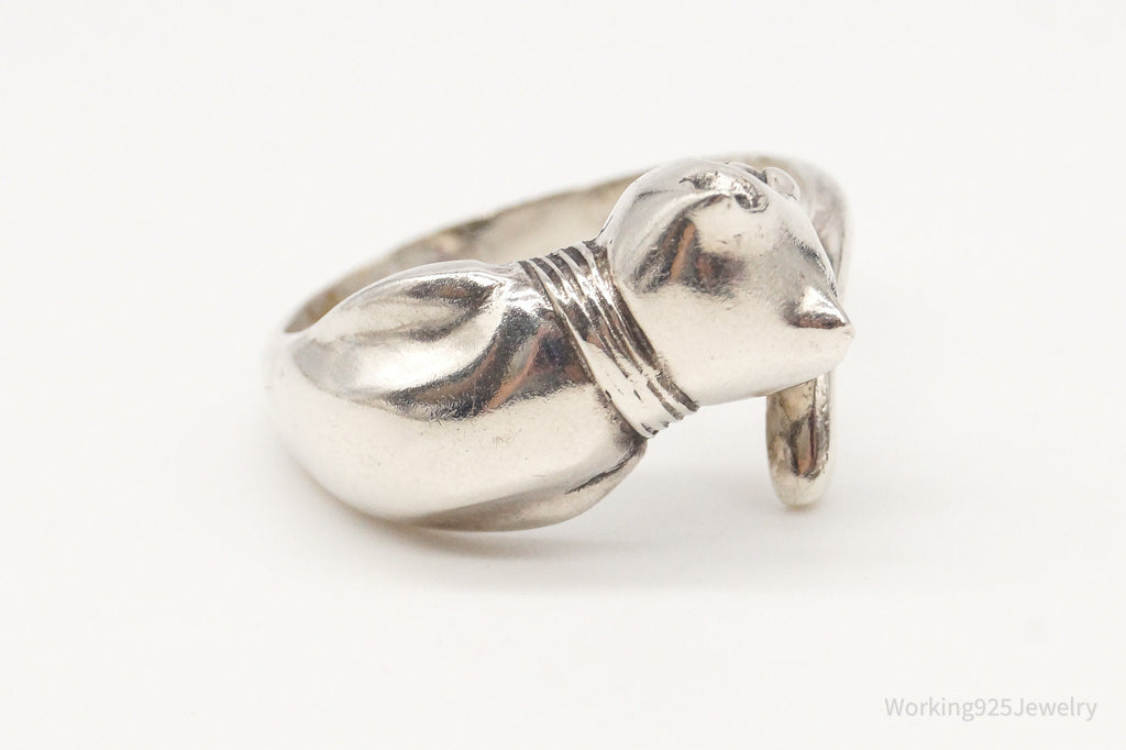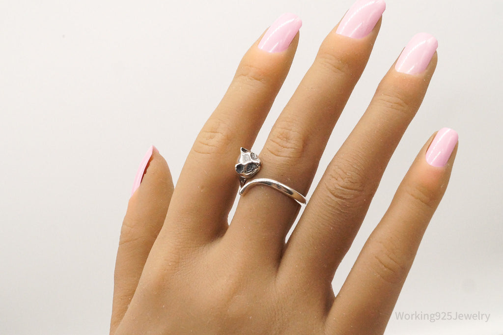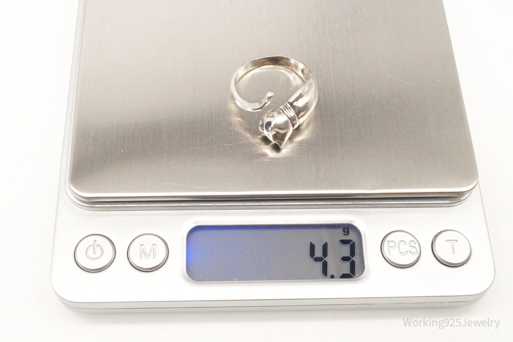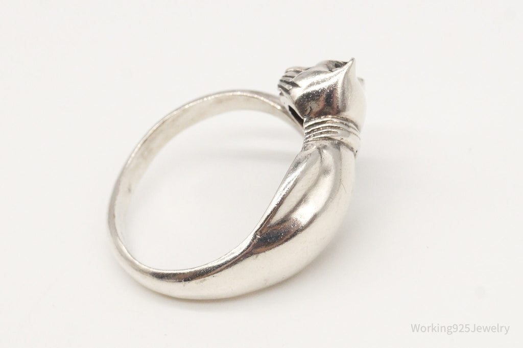 Vintage Designer BOMA Cat Kitty Kitten Sterling Silver Ring - Size 8.25 Adj.