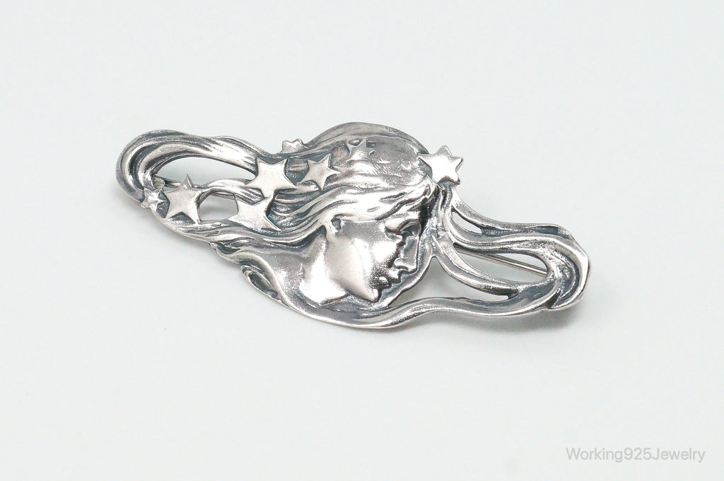 Vintage Designer BOMA Goddess Sterling Silver Brooch Pin