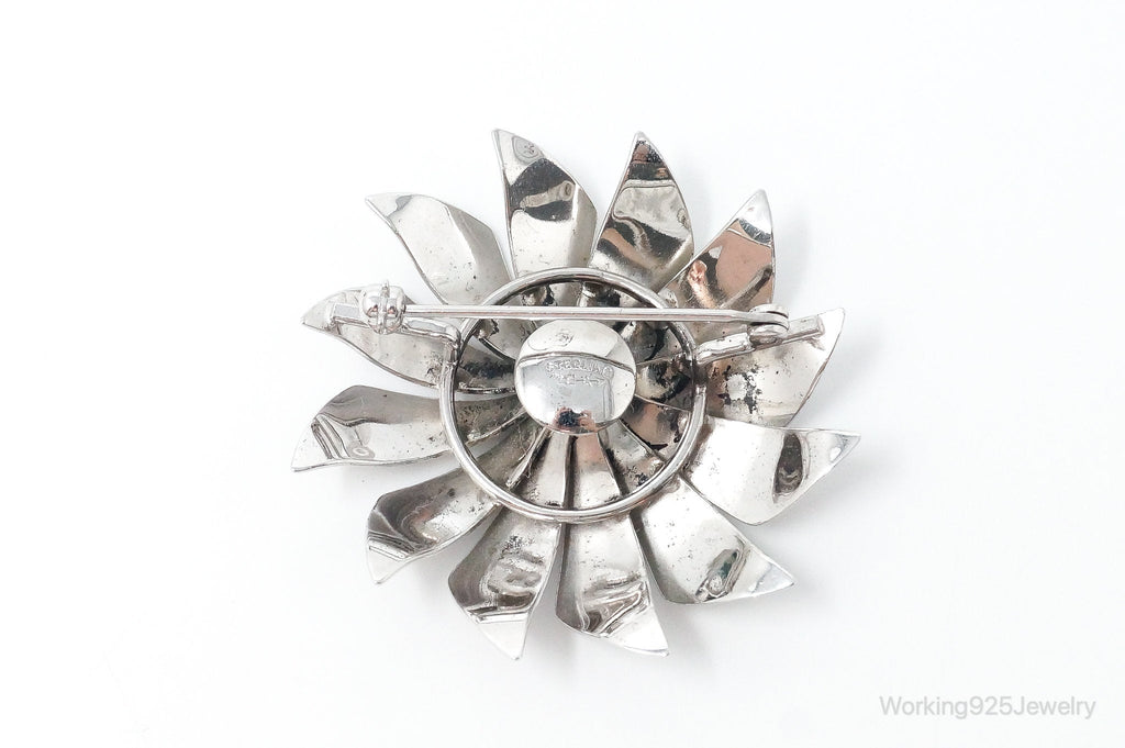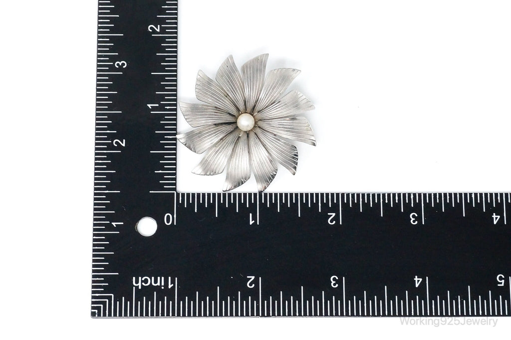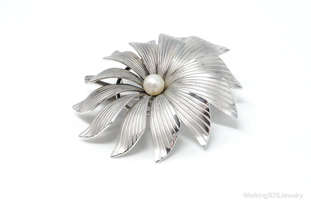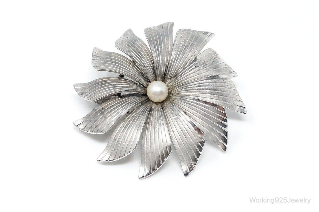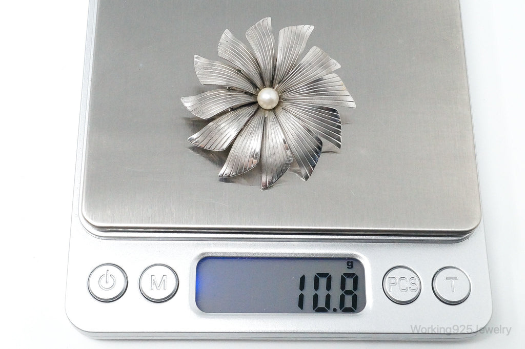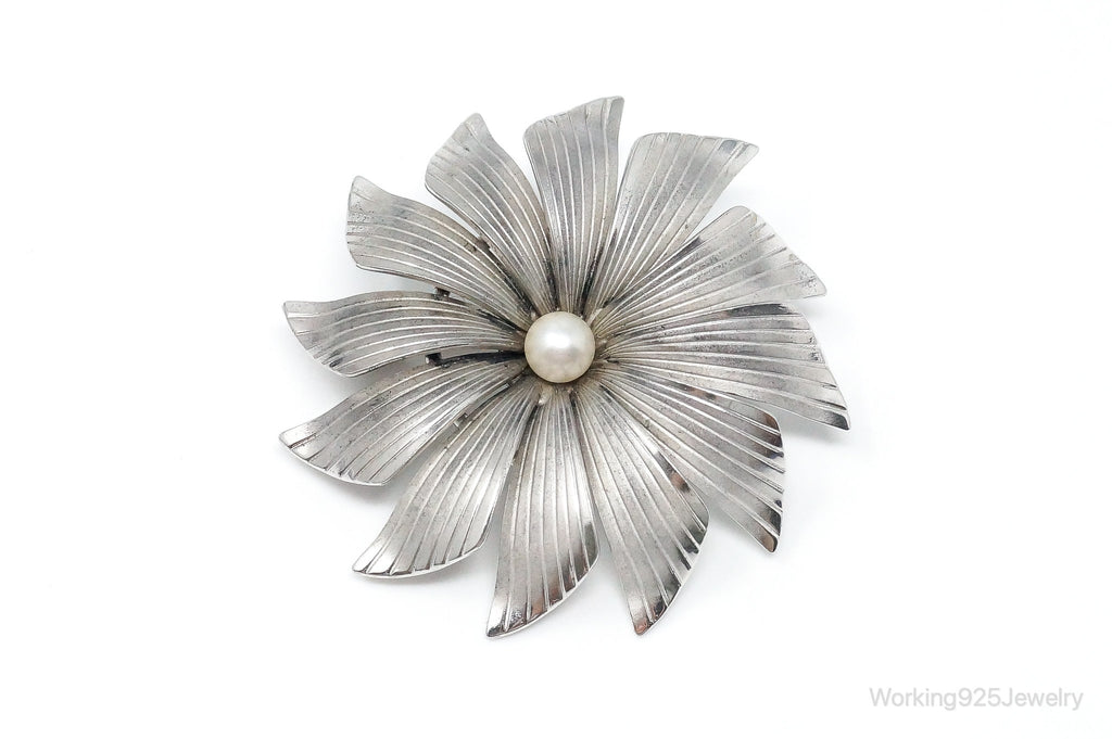 Vintage Designer Carl-Art Pearl Flower Sterling Silver Brooch Pin