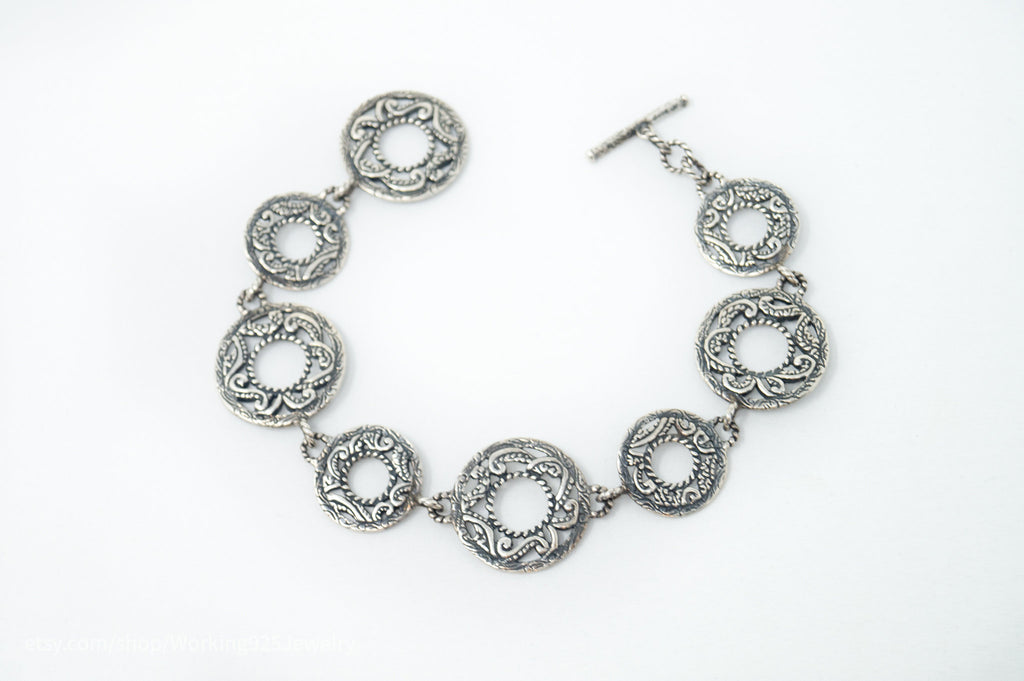 Vintage Designer Carolyn Pollack Relios Southwestern Sterling Silver Bracelet