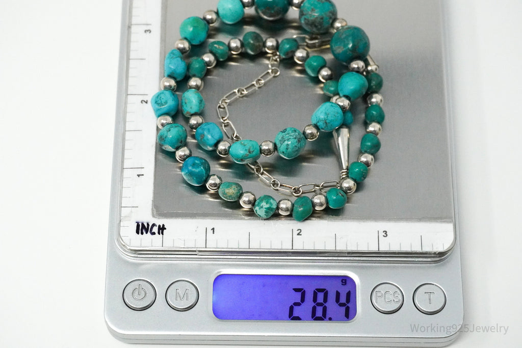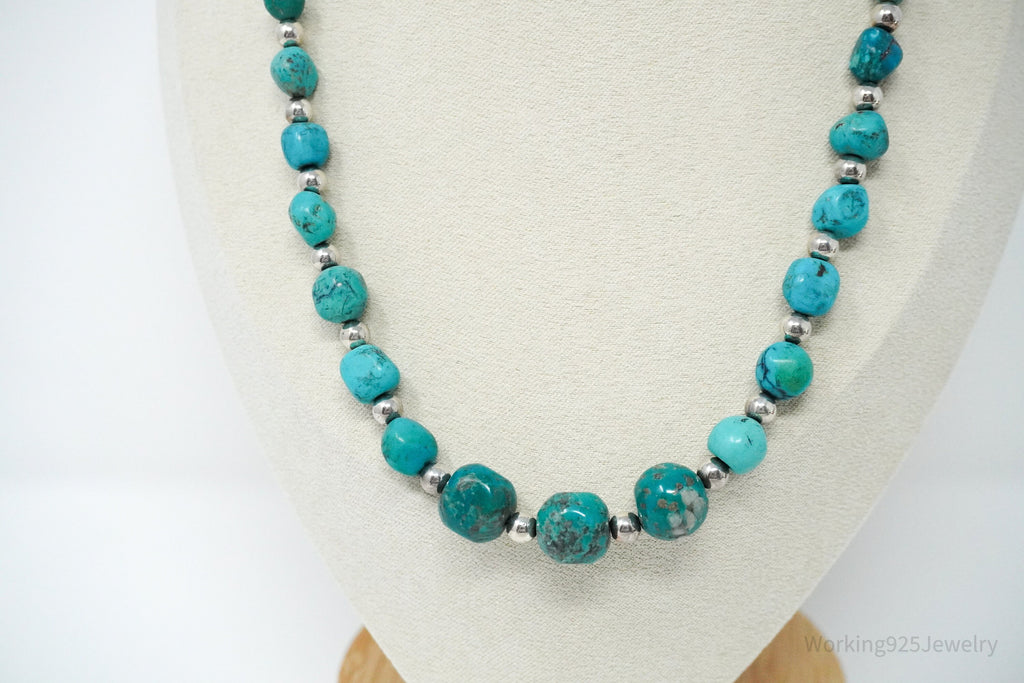 Vintage Designer Carolyn Pollack Relios Turquoise Bead Sterling Silver Necklace 20"
