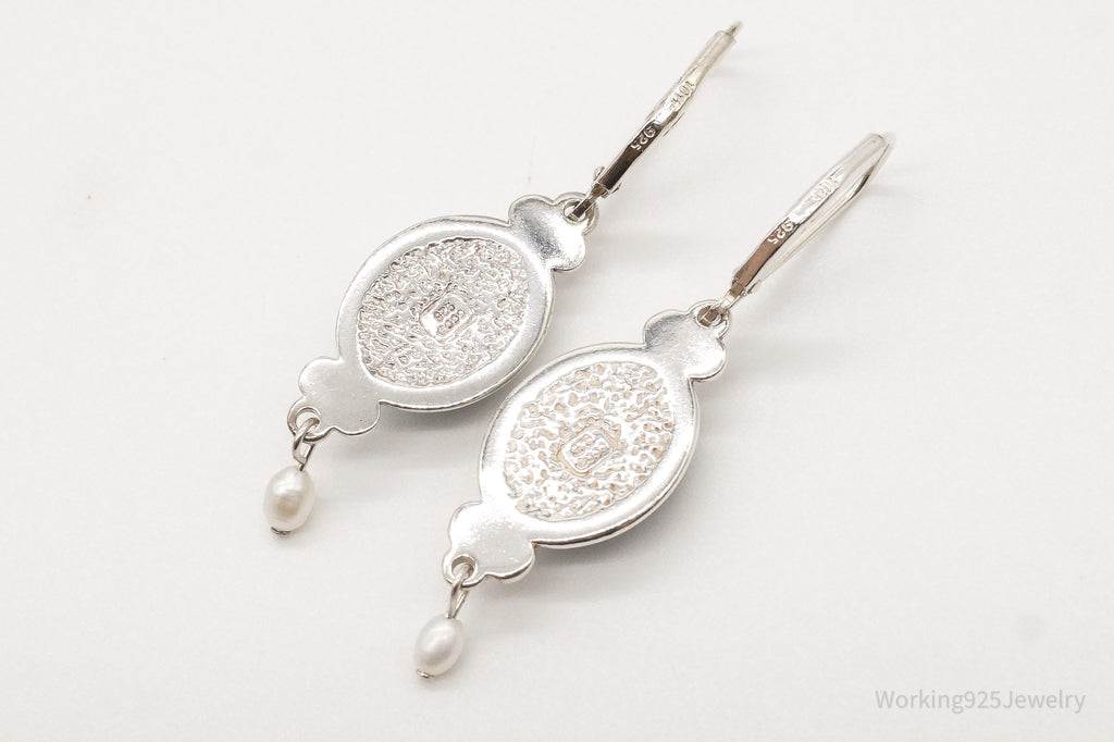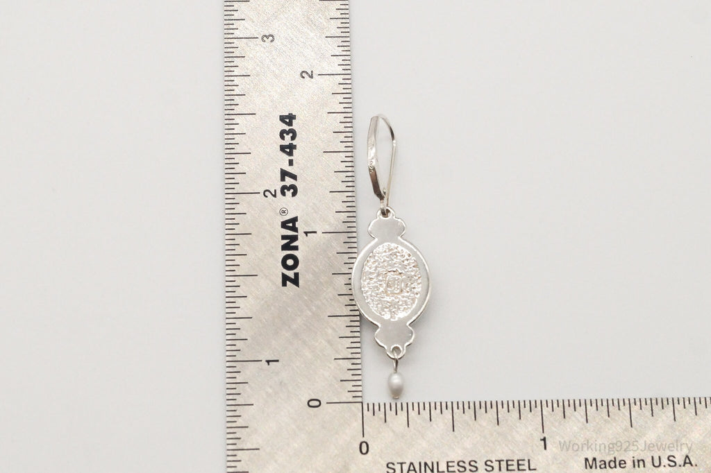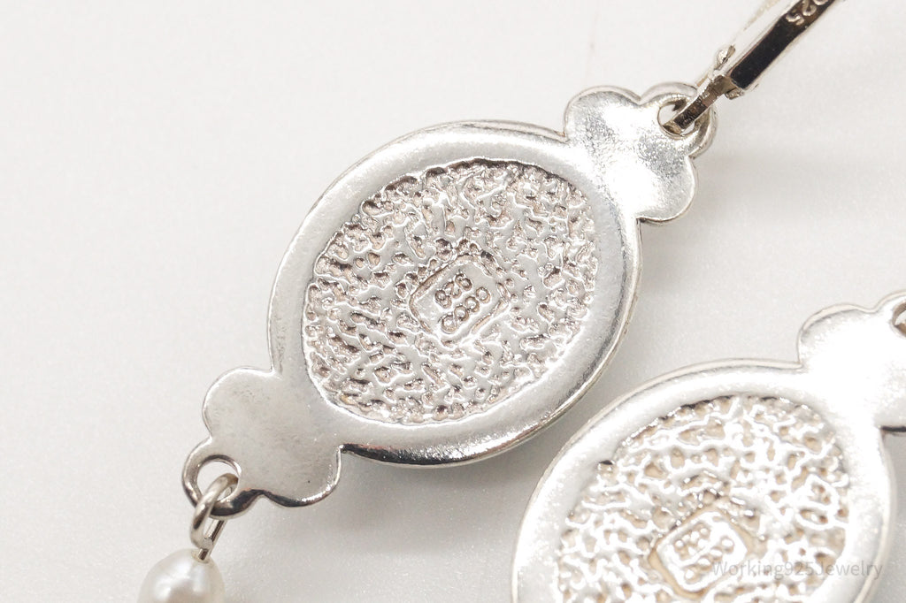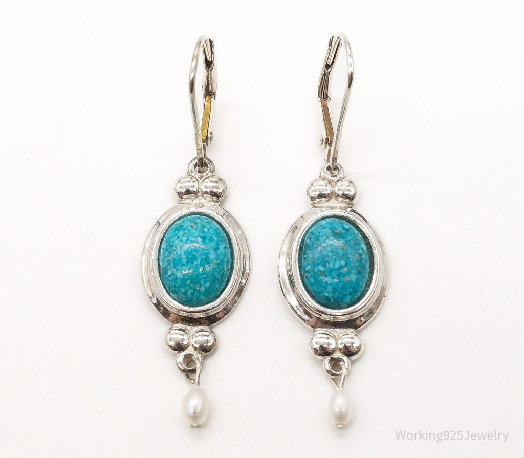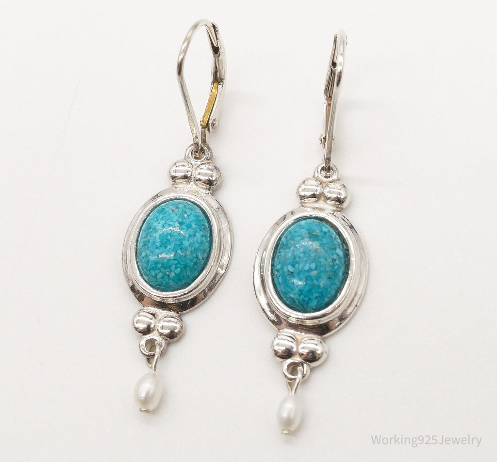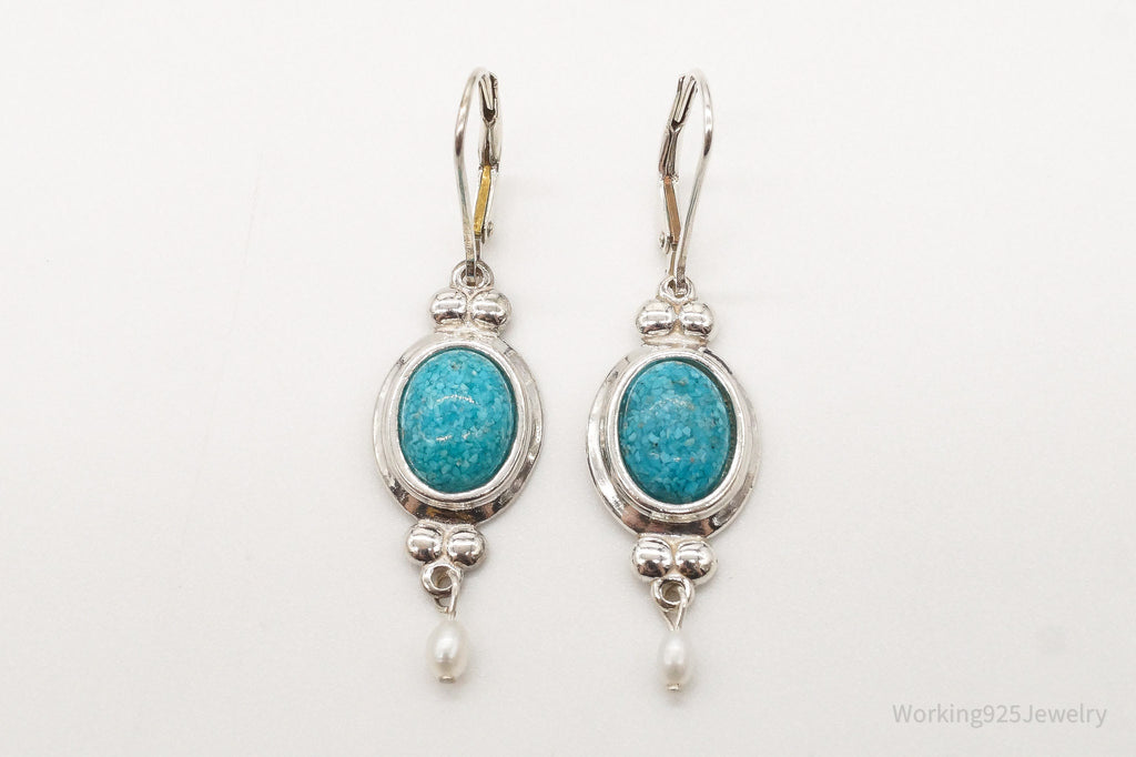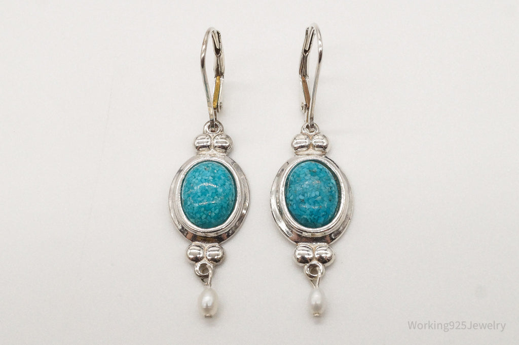 Vintage Designer CCO Turquoise Pearl Sterling Silver Earrings