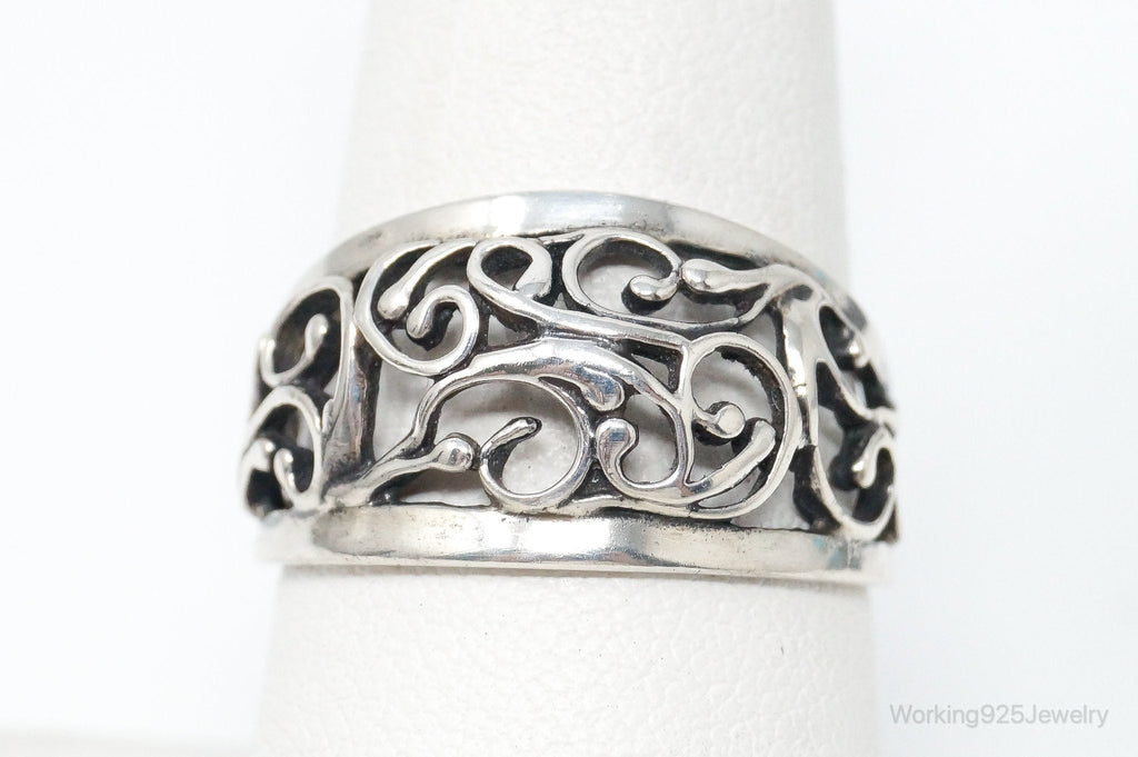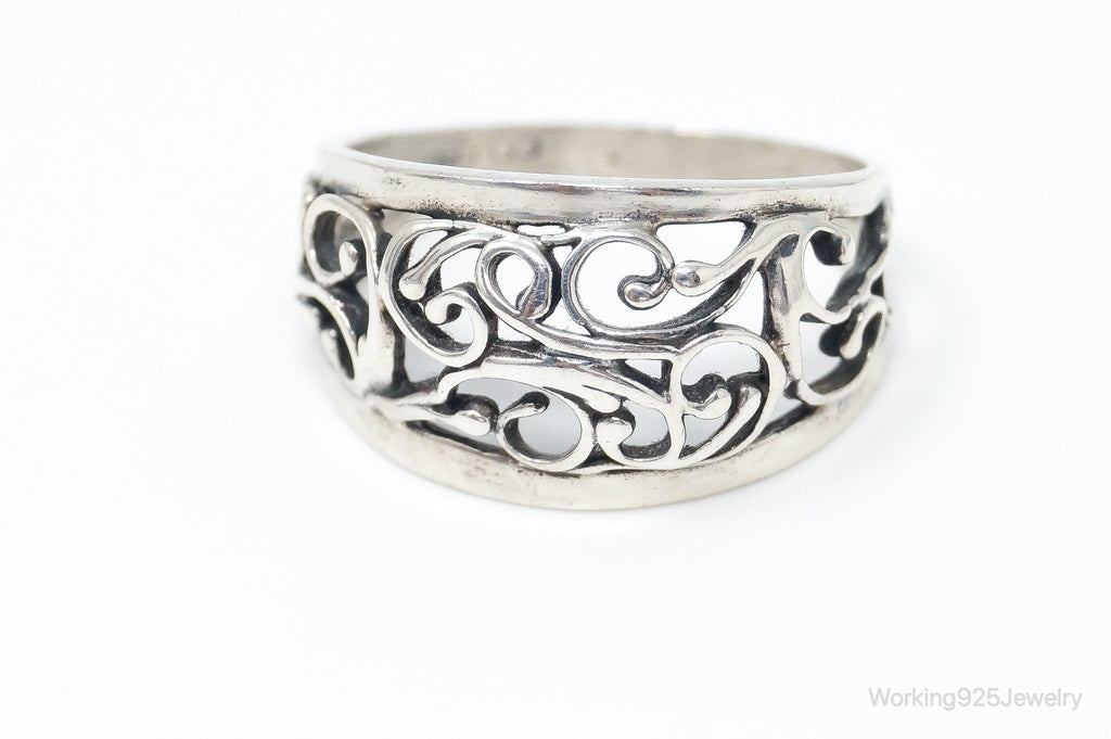 Vintage Designer Cellini Art Nouveau Cut Out Sterling Silver Ring Size 8.5