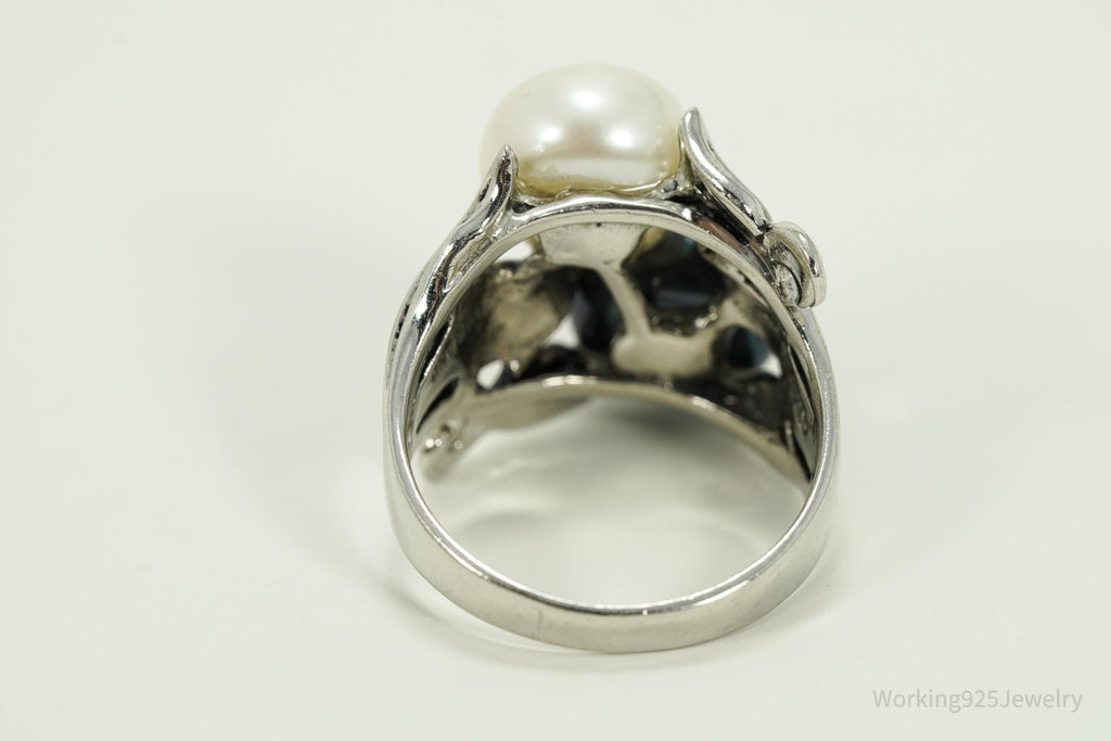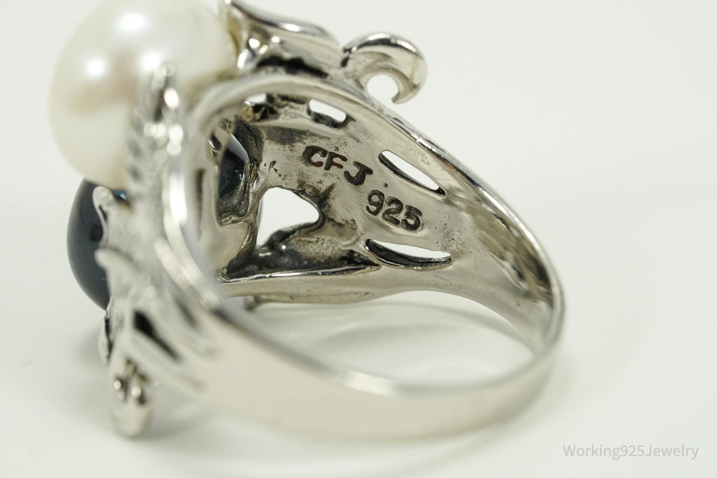 Vintage Designer CFJ White & Tahitian Pearl Sterling Silver Ring Size 7.25