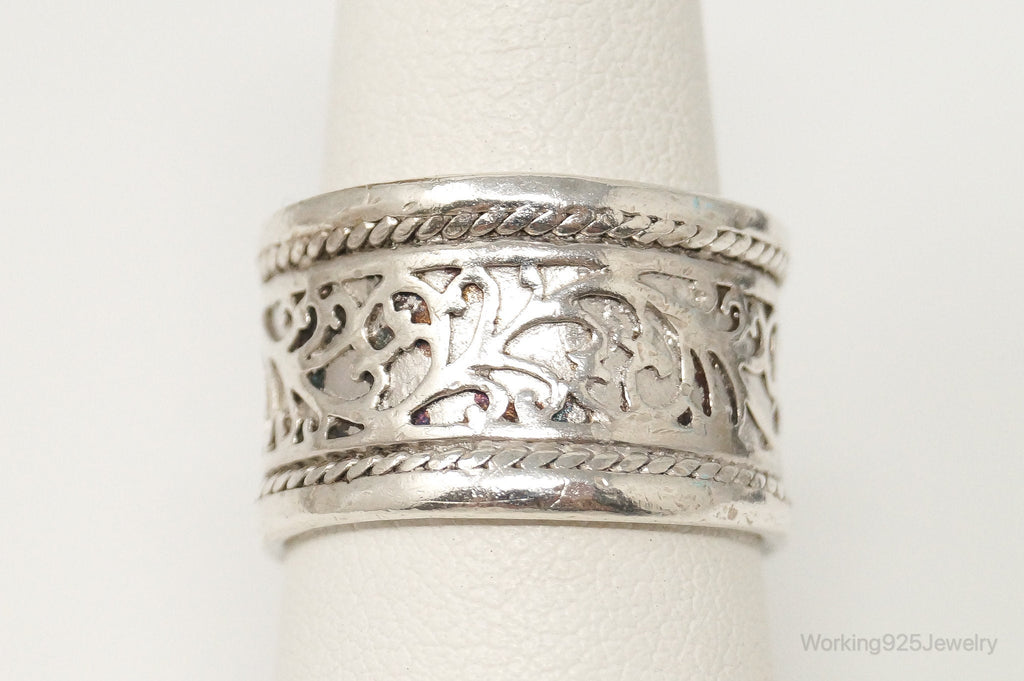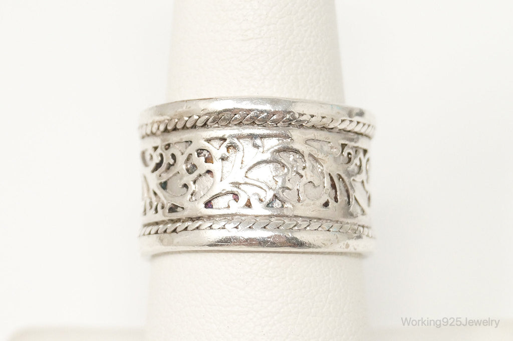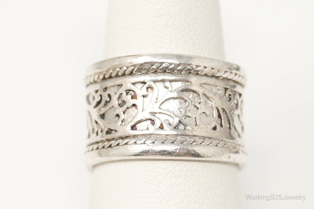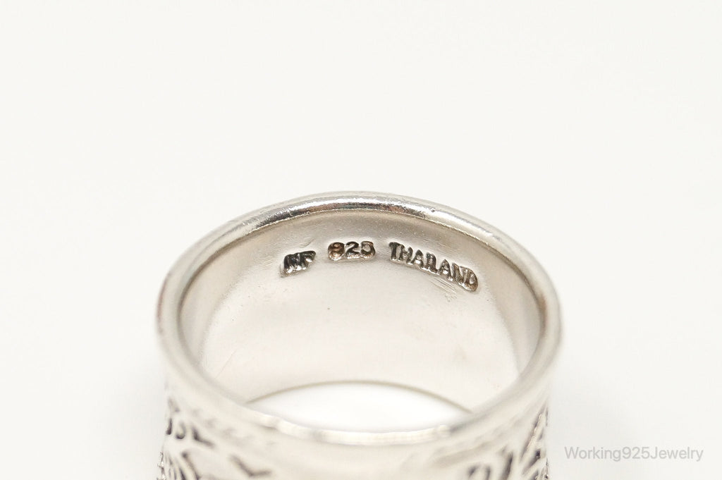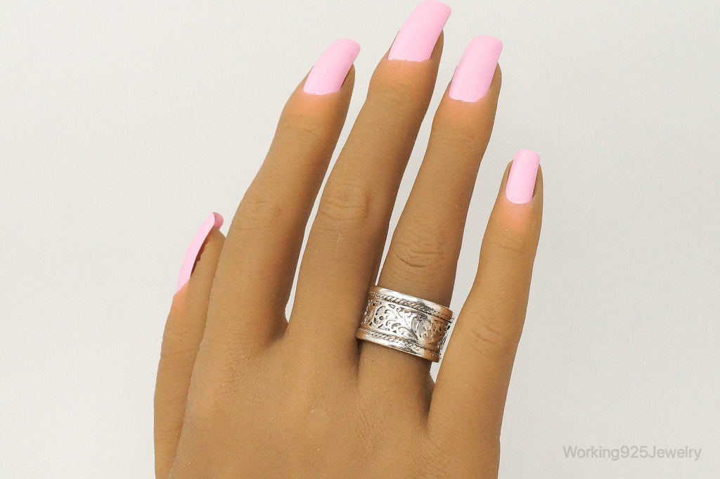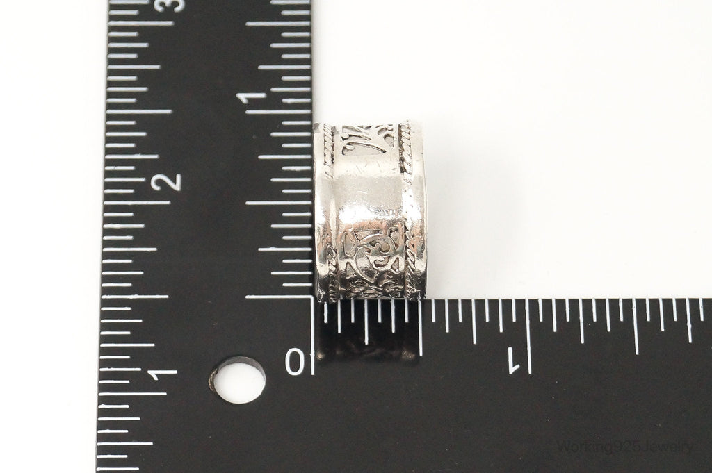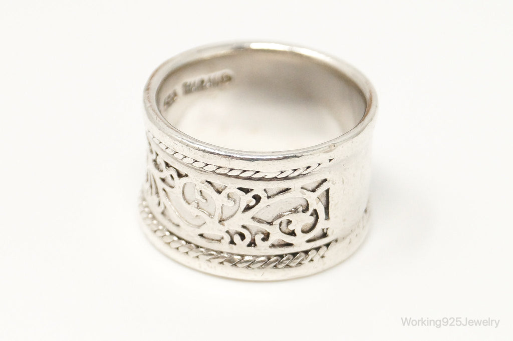 Ring Listings: It is sometimes difficult to determine how a ring will fit without being able to try it on. I always recommend taking your favorite ring to a local jeweler and comparing the way that it sits on a mandrel (ring sizer) with the pictures in the listings prior to purchase. Sometimes wide band rings fit a little differently and I always want my customers to be 100% happy with their purchases! Please let me know if I can help by offering more pictures for size comparison.