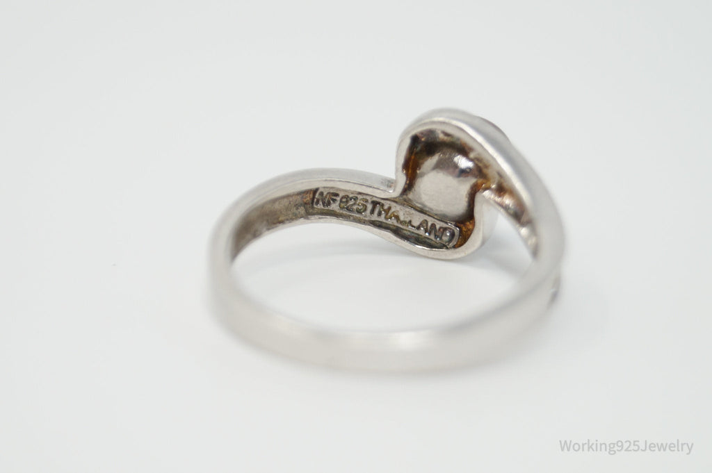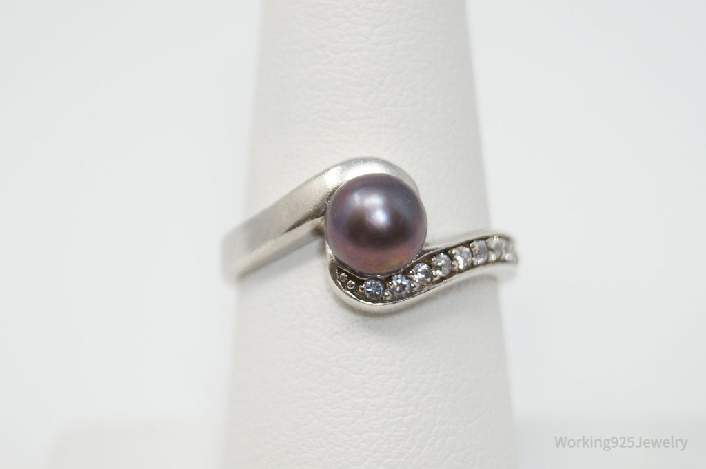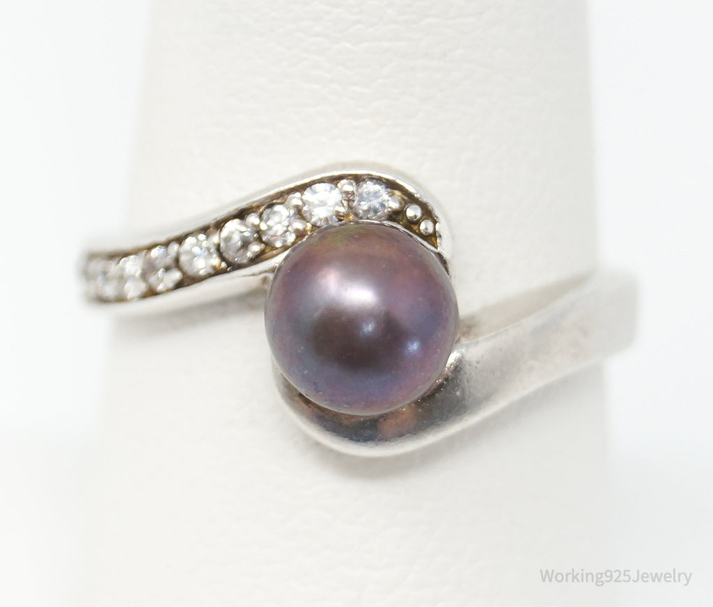 Vintage Designer Chapal-Zenray Tahitian Pearl CZ Sterling Silver Ring - Sz 7.75