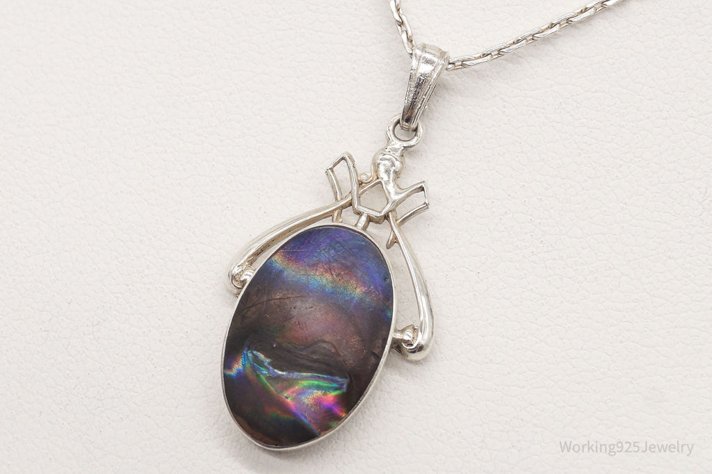 Vintage Designer Ciana Paua Abalone Shell Sterling Silver Necklace