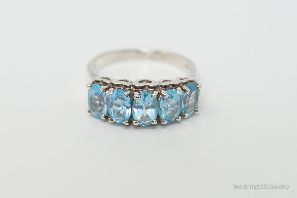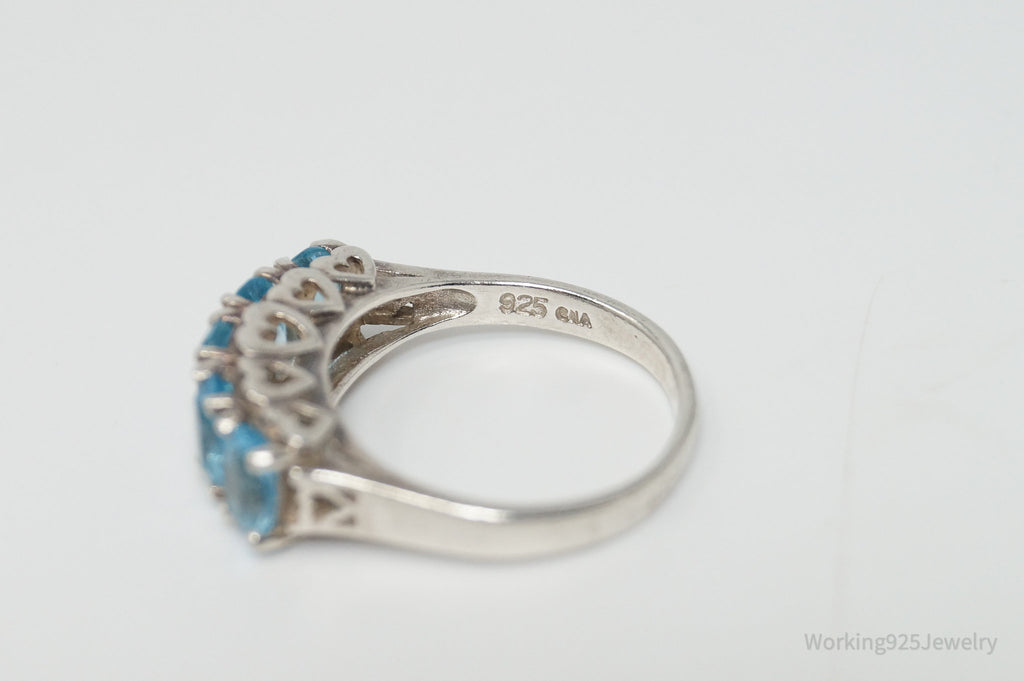 Vintage Designer CNA Blue Topaz Heart Design Sterling Silver Ring - SZ 6.75
