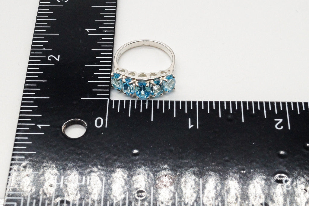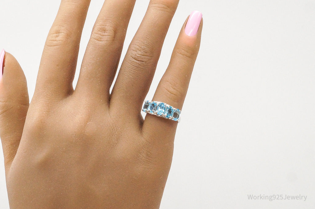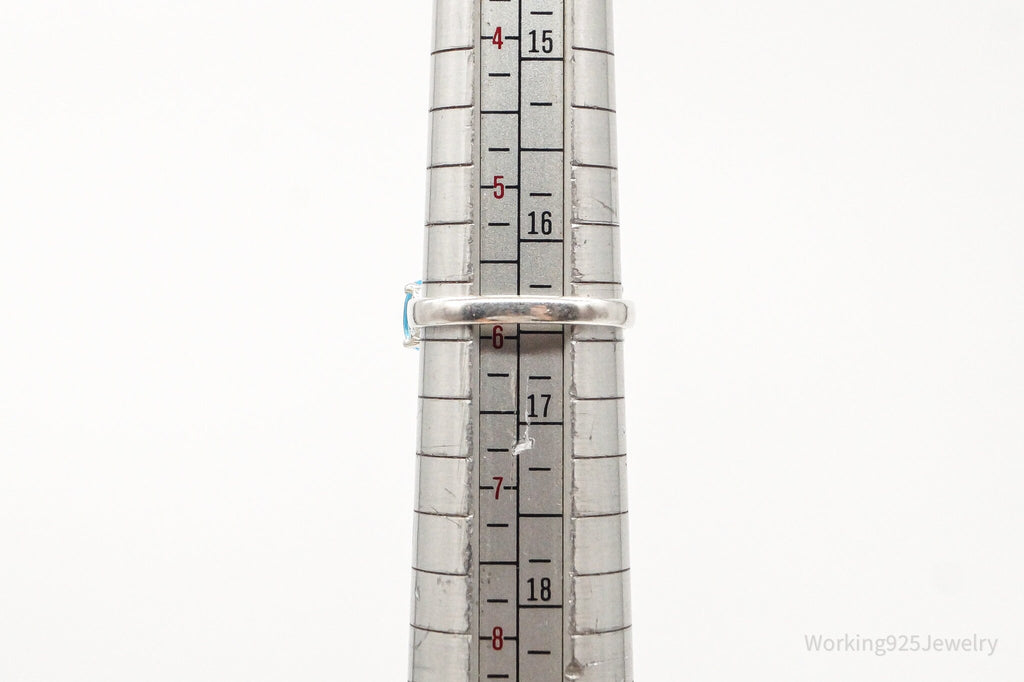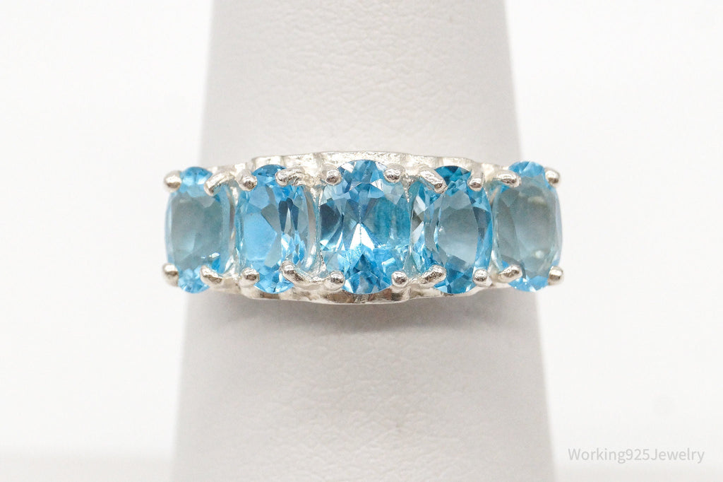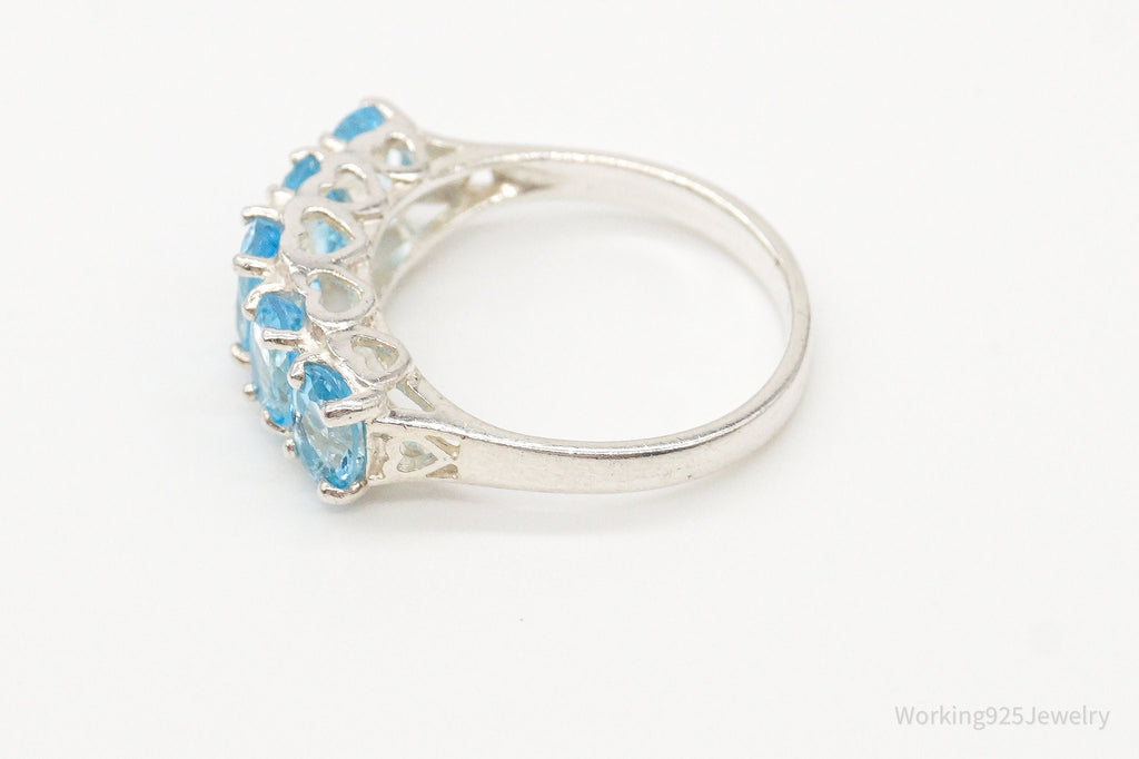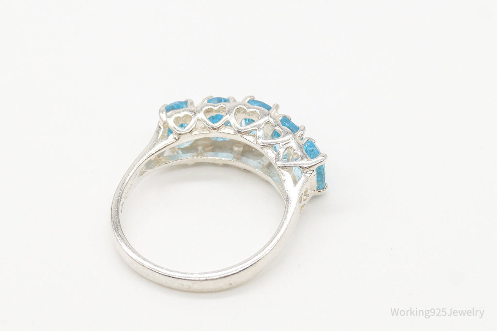 Vintage Designer CNA Blue Topaz Heart Pattern Sterling Silver Ring SZ 5.75