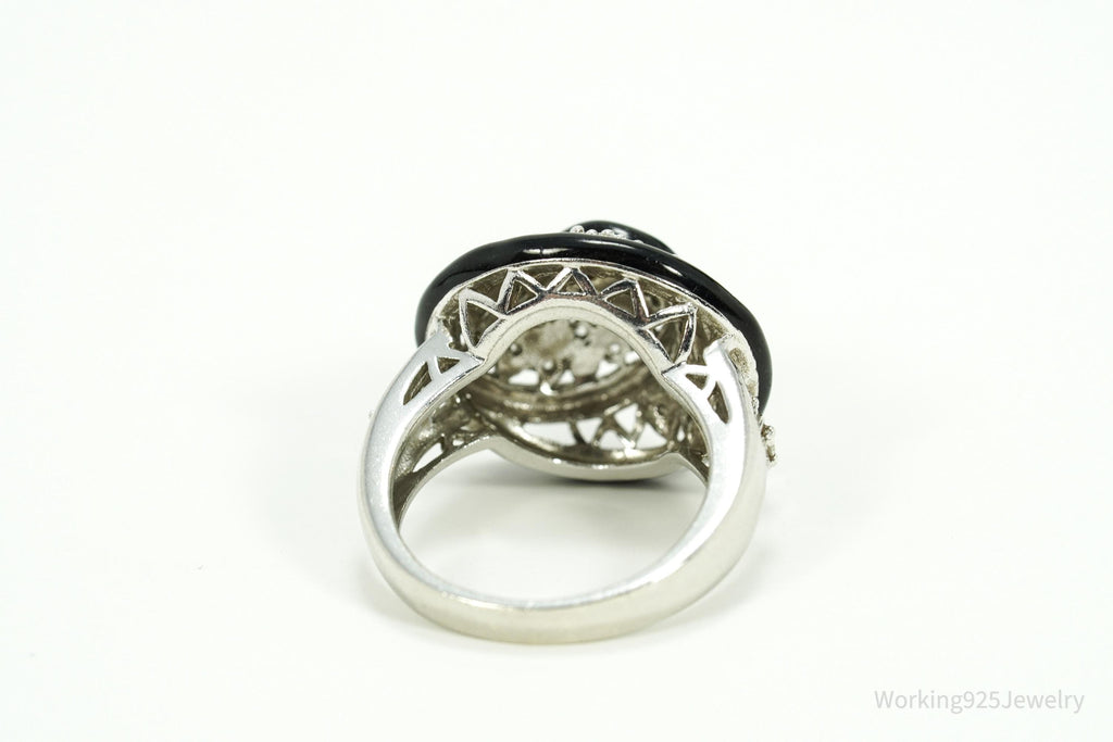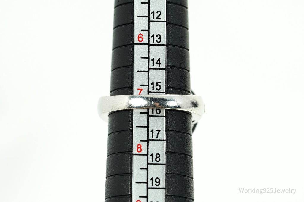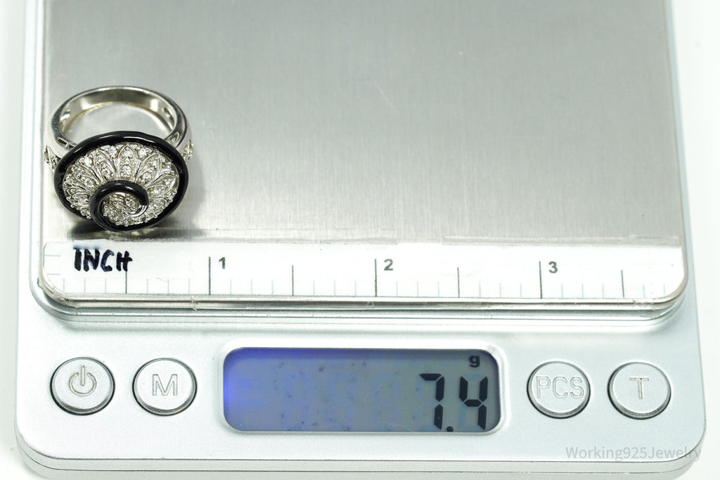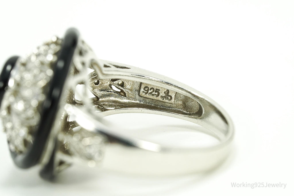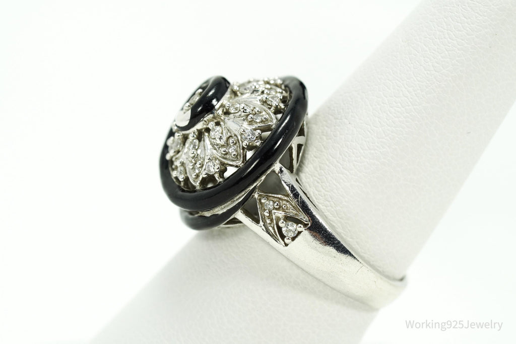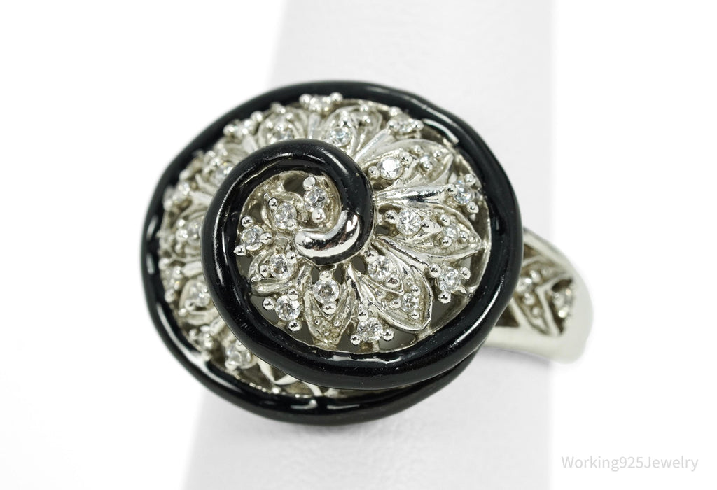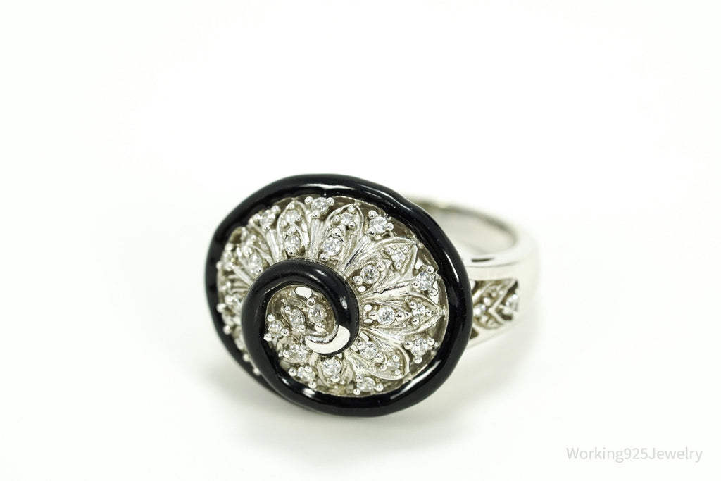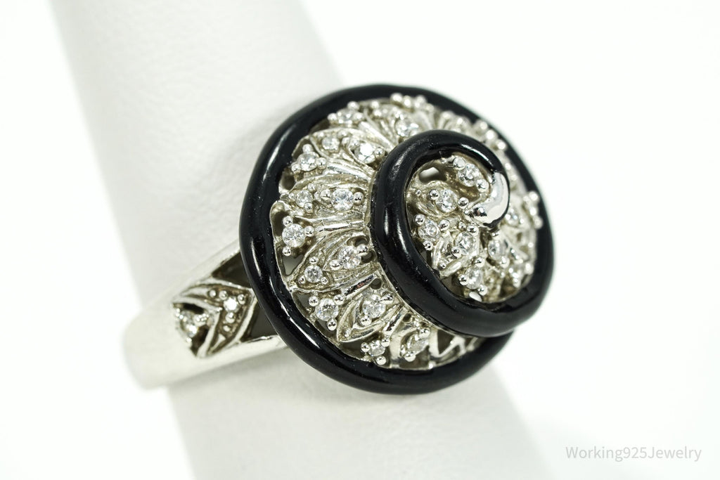Vintage Designer Cubic Zirconia & Enamel Spiral Sterling Silver Ring - Size 7