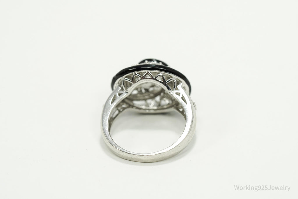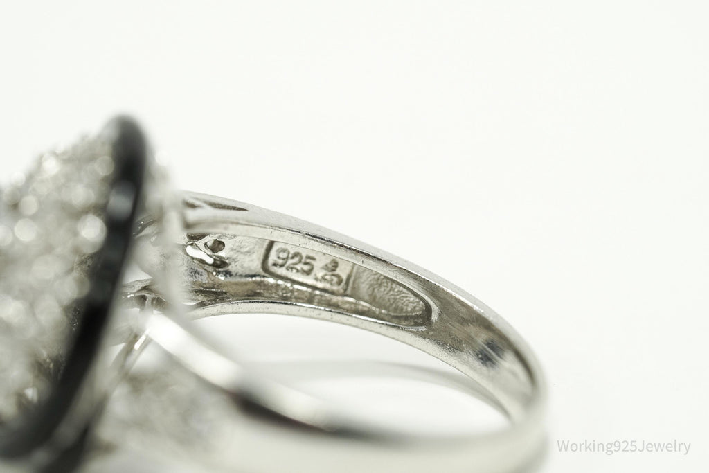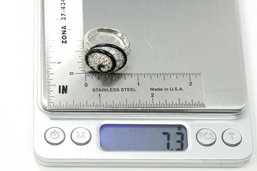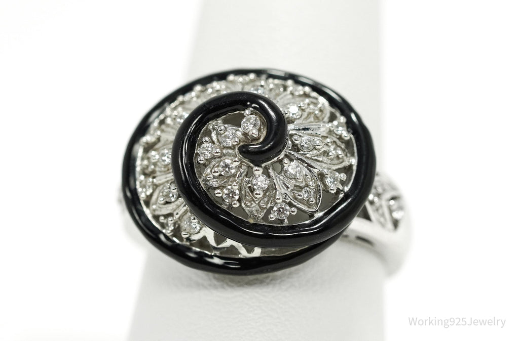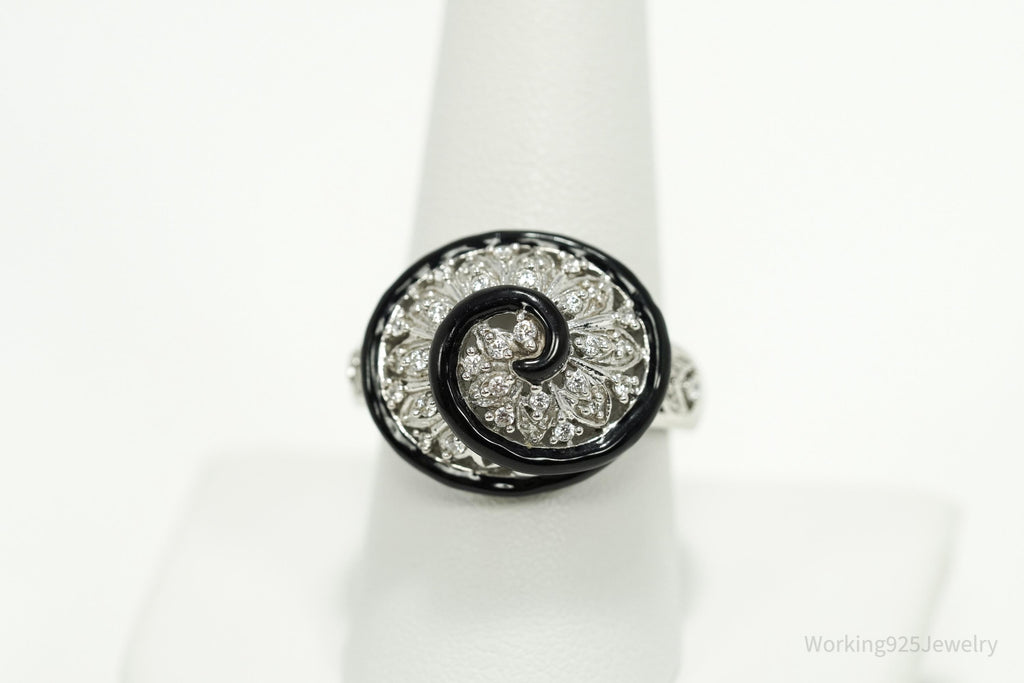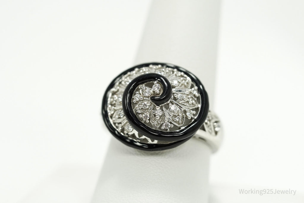 Vintage Designer Cubic Zirconia & Enamel Spiral Sterling Silver Ring - Size 9