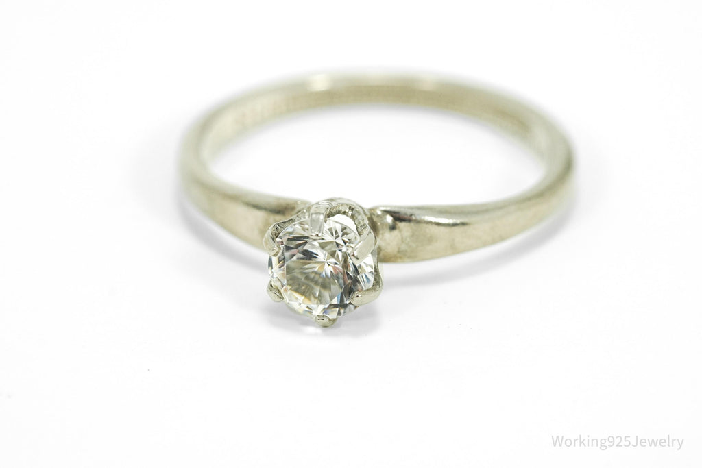 Vintage Designer Cubic Zirconia Sterling Silver Ring Size 7.75