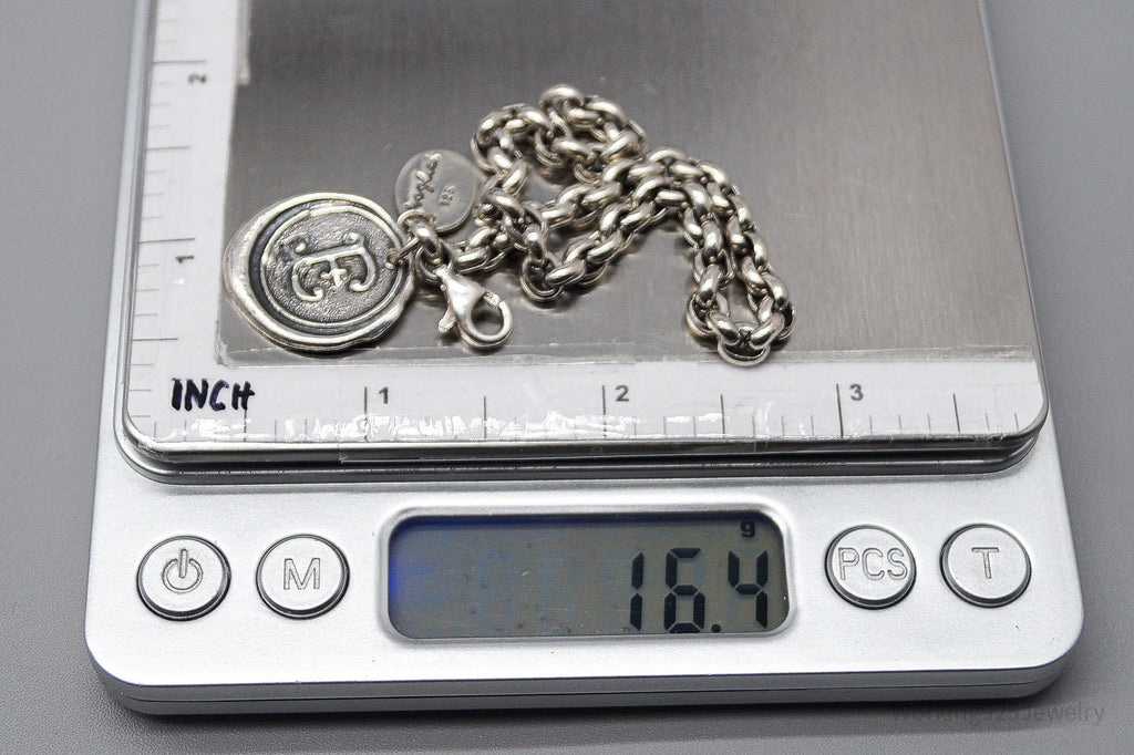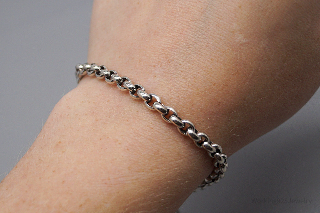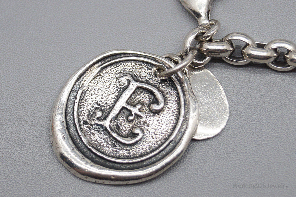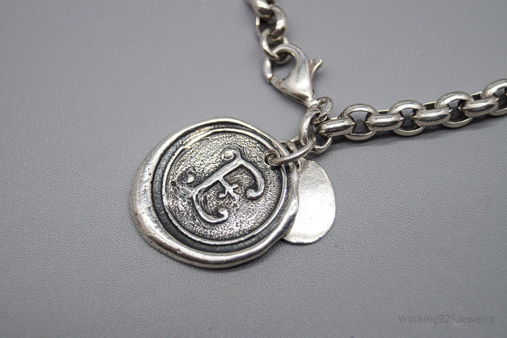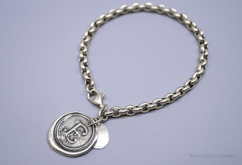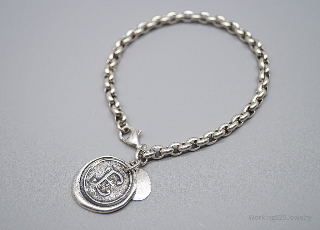 Vintage Designer Cursive E Sterling Silver Chain Bracelet - 7 5/8"