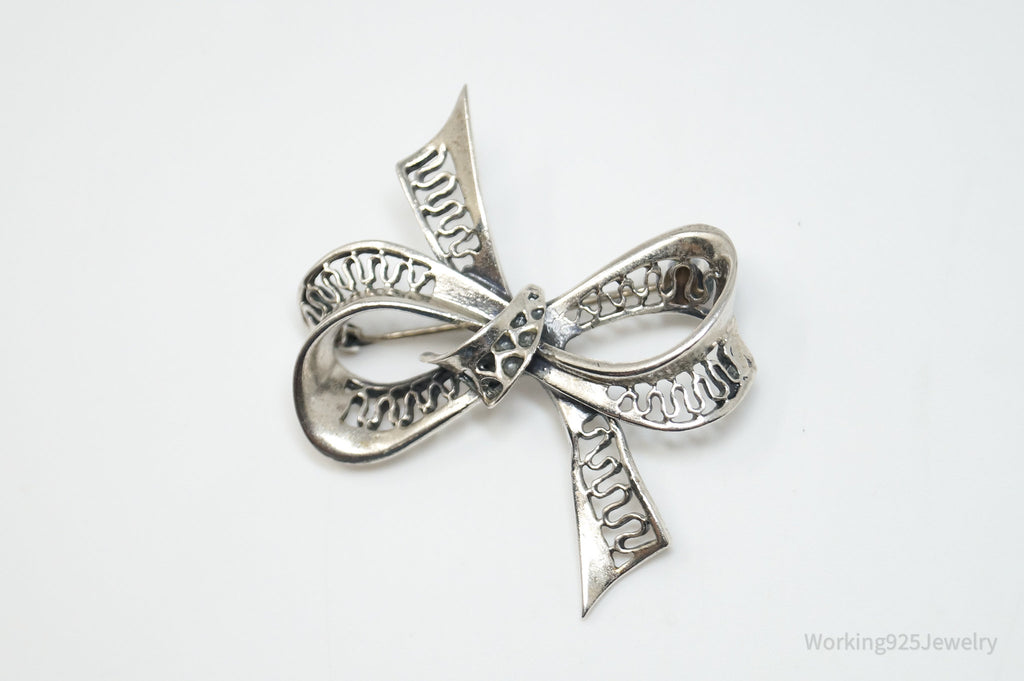 Vintage Designer Danecraft Large Bow Sterling Silver Pin Brooch