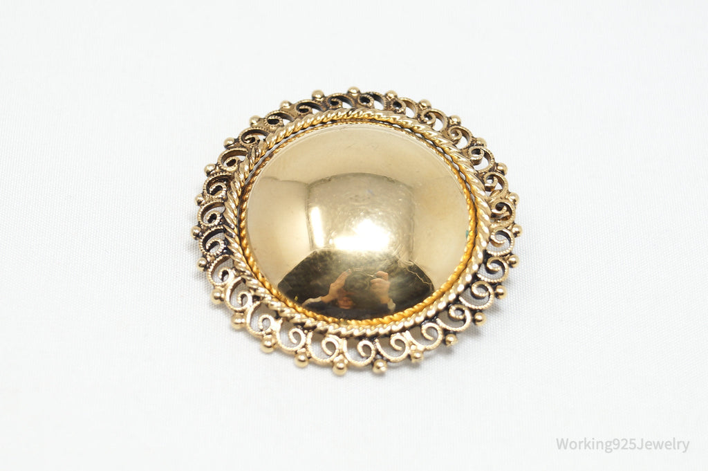 Vintage Designer Danecraft Large Gold Wash Sterling Silver Pin Brooch